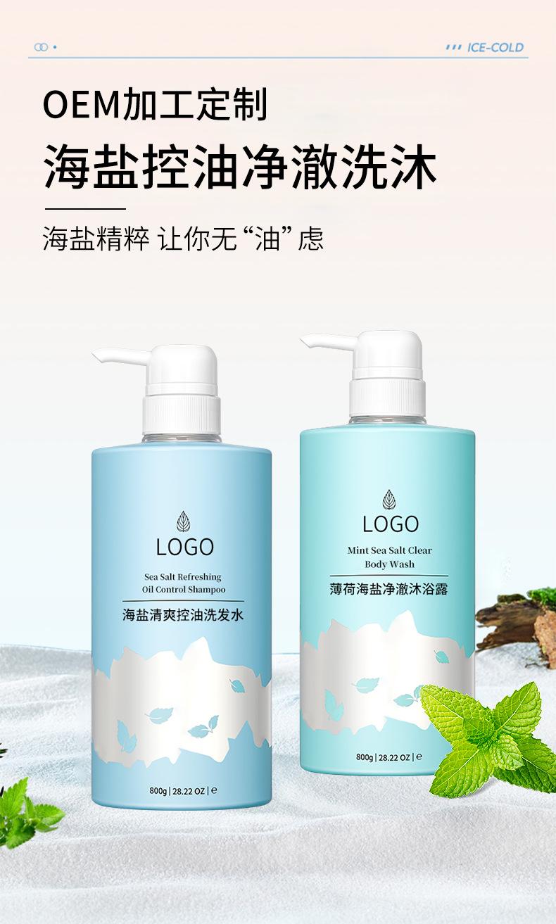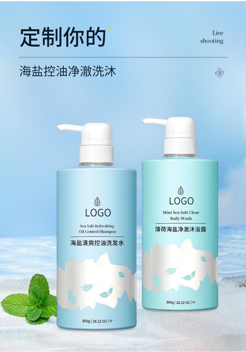 Shampoo de sal marinho gel de banho oem processamento de óleo de oem controle refrescante shampoo loção de banho produção personalização