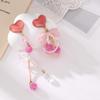 Brincos Longos Super Fada Rosa Água Coração Borla de Pérola para Mulheres Design Fresco e Doce Novos Brincos 2023
