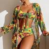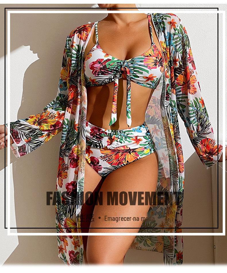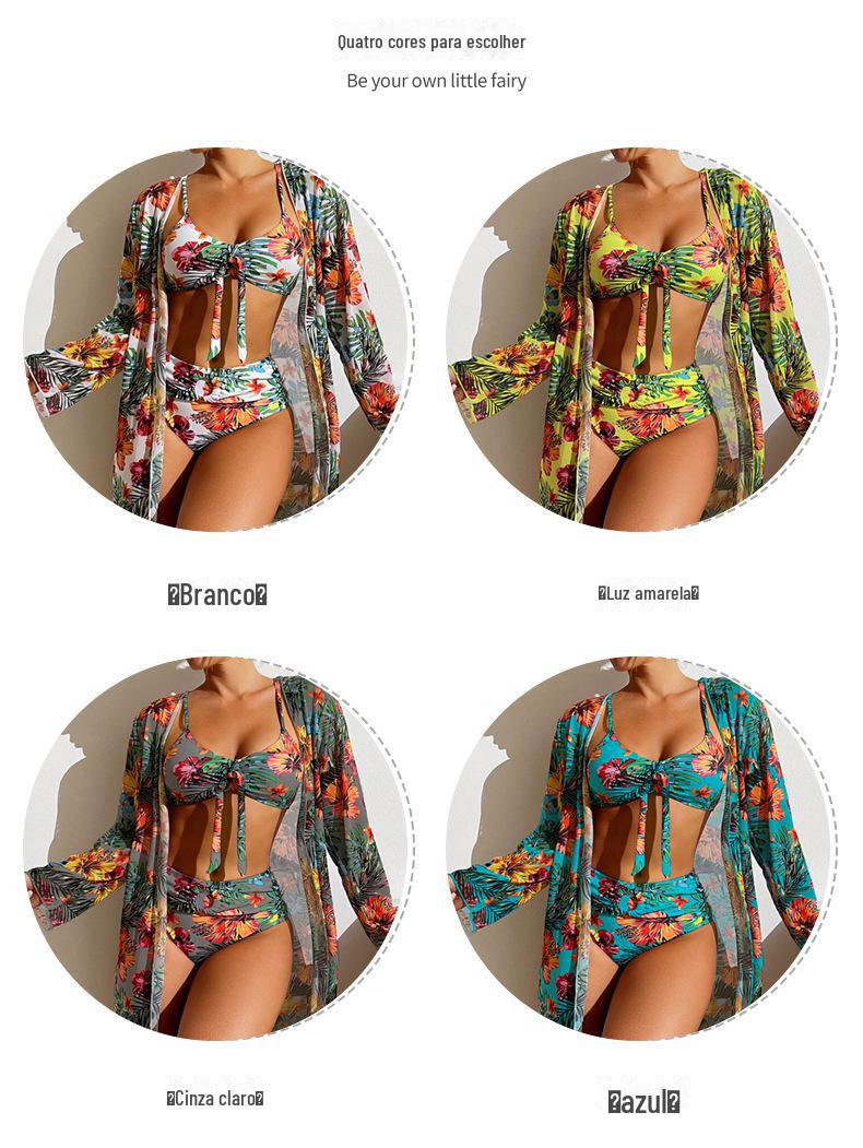 Biquíni feminino de três peças, camisa longa, dividido, plus size, sexy, comércio exterior, cintura alta, novo, 2025