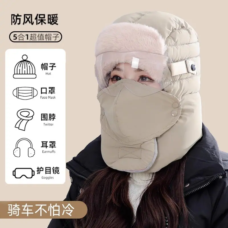 Chapéu de carro elétrico masculino e feminino inverno para andar máscara à prova de vento touca à prova de frio chapéu de algodão artefato quente de inverno chapéu Lei Feng