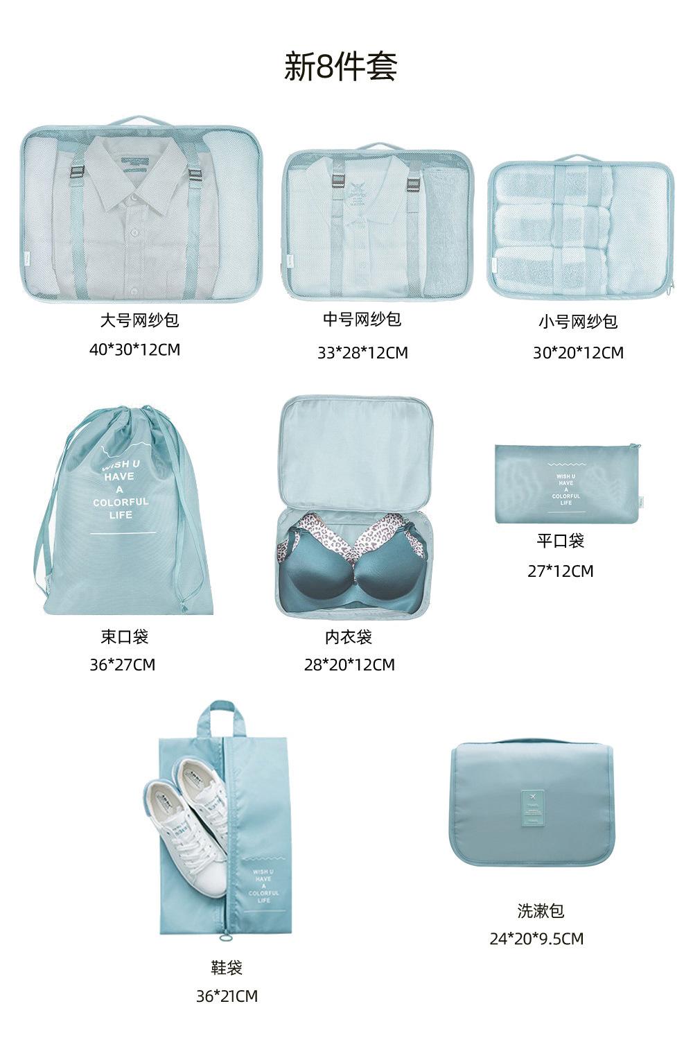 Compre Conjunto de Bolsas de Armazenamento para Viagem, Bolsa de Oito Peças, Batom, Maquiagem, Produtos de Higiene Pessoal, Classificação, Dobrável, Organização, Cordão, Mala de Rodinhas no atacado no Joom.pro