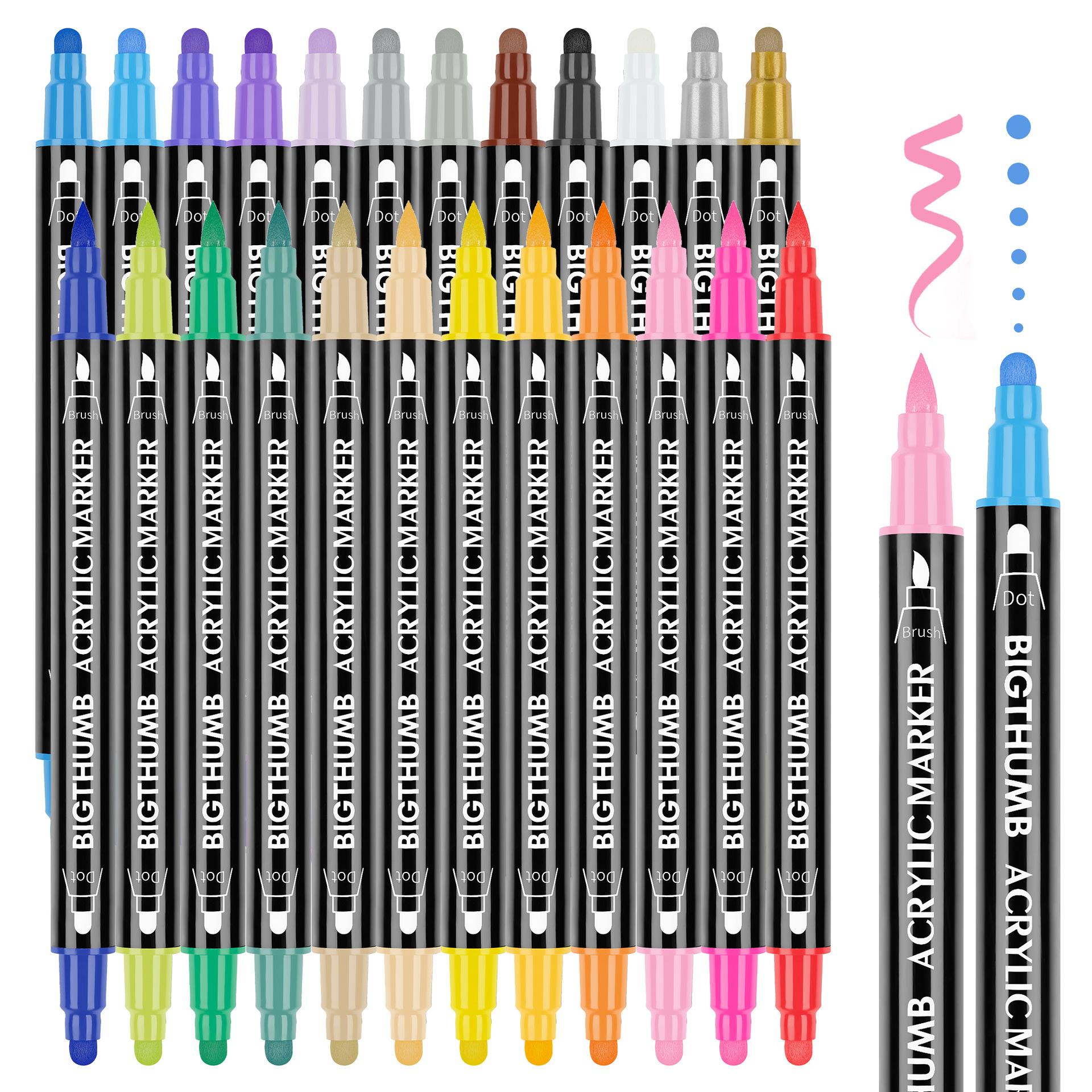 Compre Caneta Marcadora Acrílica de Ponta Macia de Ponta Dupla Pintura Arte DIY Colorir Pintura Caneta Pontilhada no atacado no Joom.pro