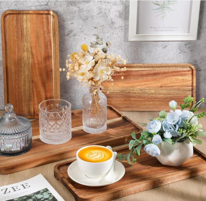Bandeja de café de madeira de acácia bandeja de madeira estilo japonês criativa retangular sobremesa de lanche prato de lanche bandeja de madeira maciça
