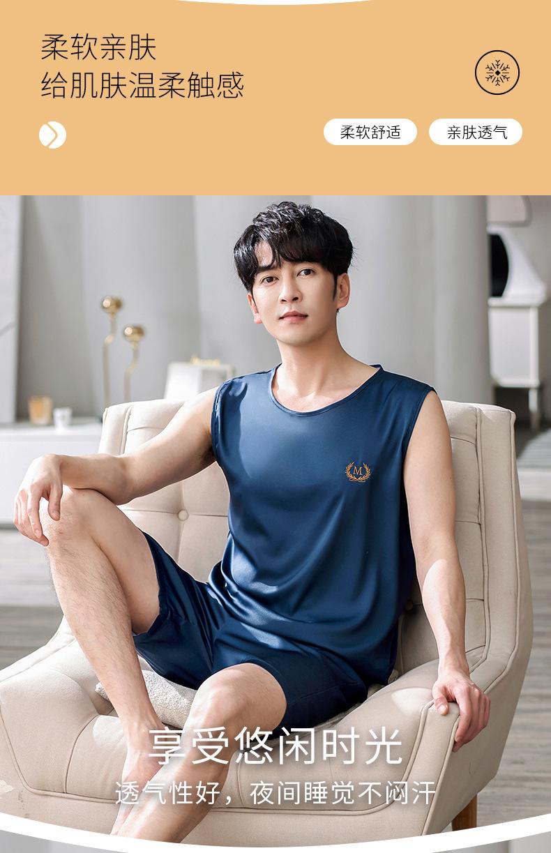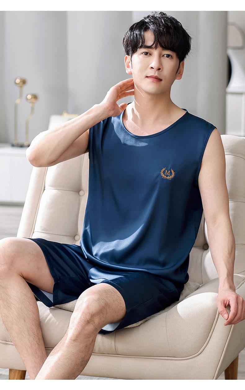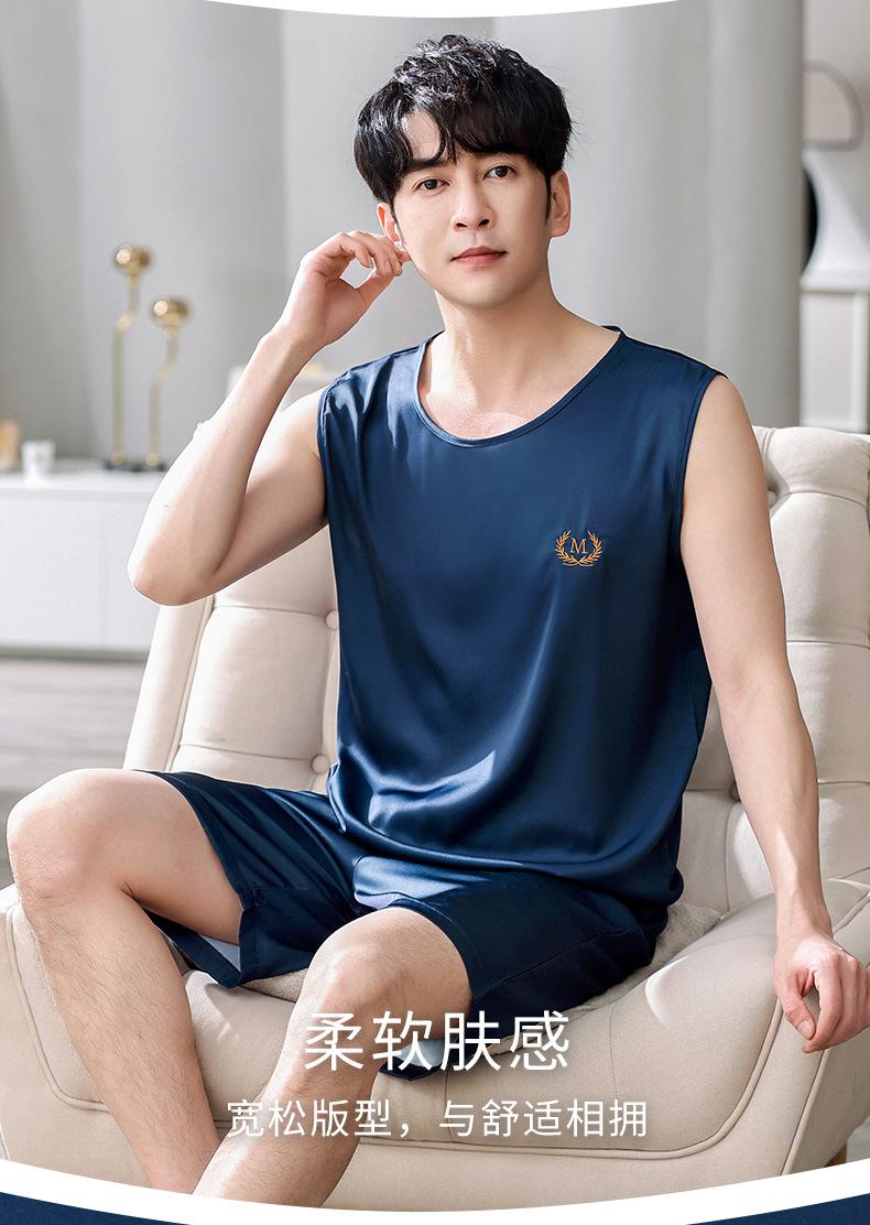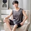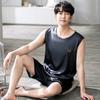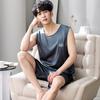 Pijamas homens verão gelo colete de seda casa usar fino plus size solto seda artificial homens solto