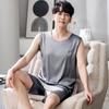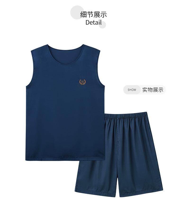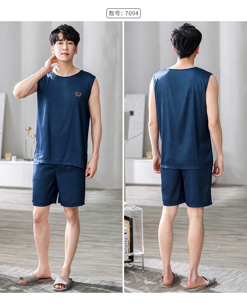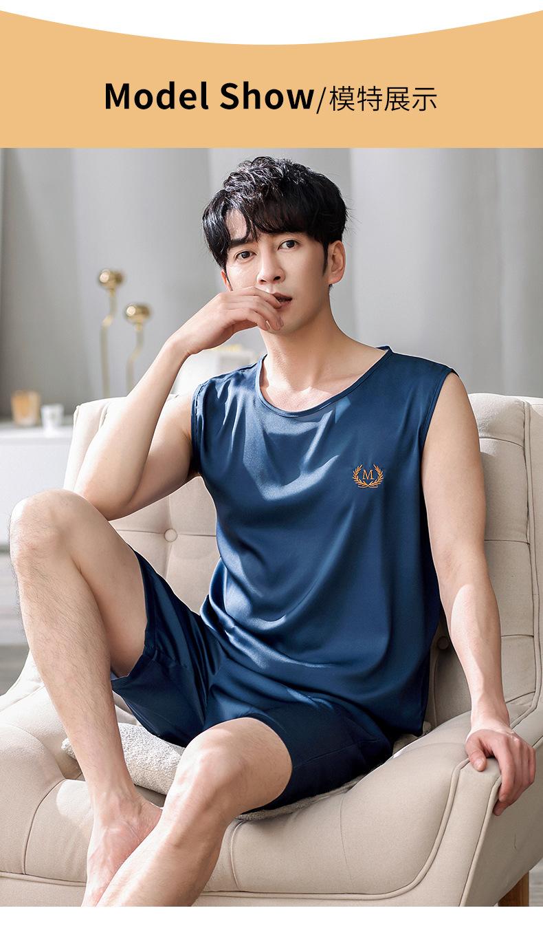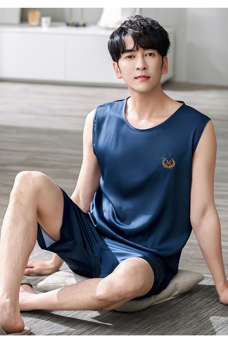 Pijamas homens verão gelo colete de seda casa usar fino plus size solto seda artificial homens solto