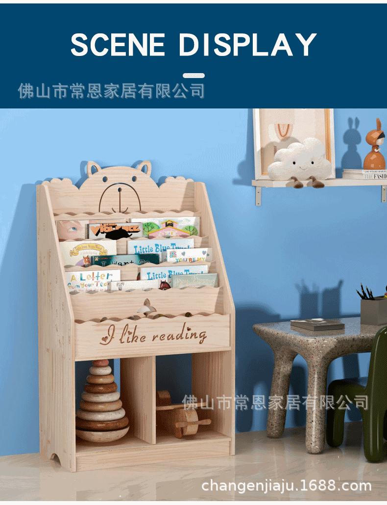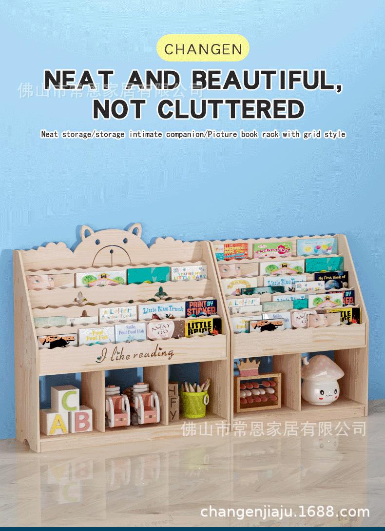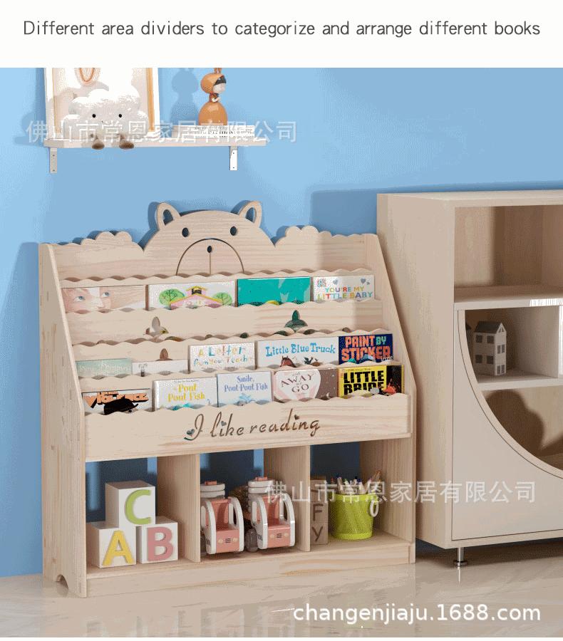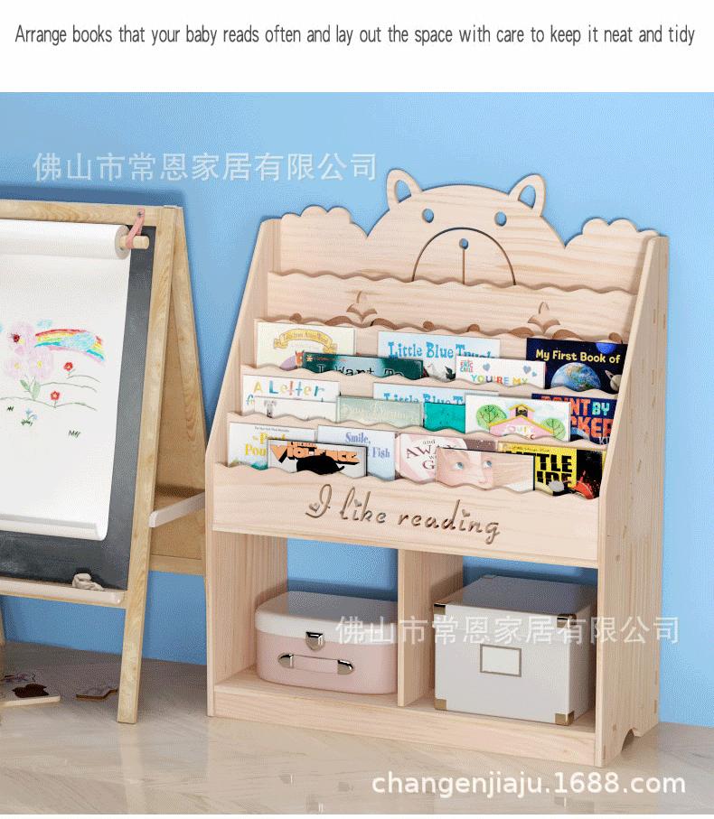 Estante de Livros Infantil de Madeira Maciça Transfronteiriça Armário de Armazenamento de Chão Jardim de Infância Bebê Desenho Animado Porta-Livros de Imagens Prateleira para Guardar Brinquedos Estante