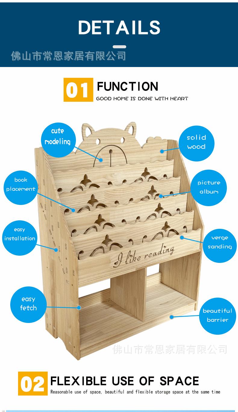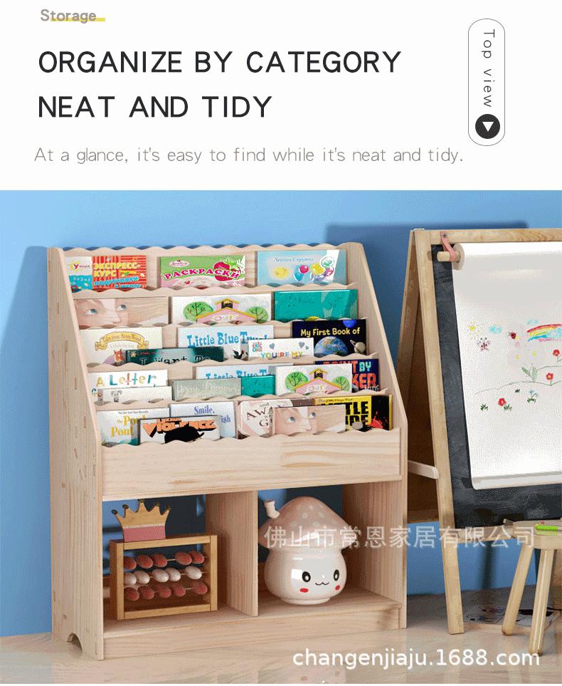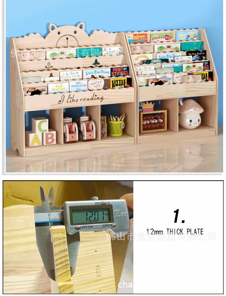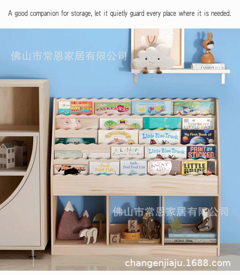 Estante de Livros Infantil de Madeira Maciça Transfronteiriça Armário de Armazenamento de Chão Jardim de Infância Bebê Desenho Animado Porta-Livros de Imagens Prateleira para Guardar Brinquedos Estante