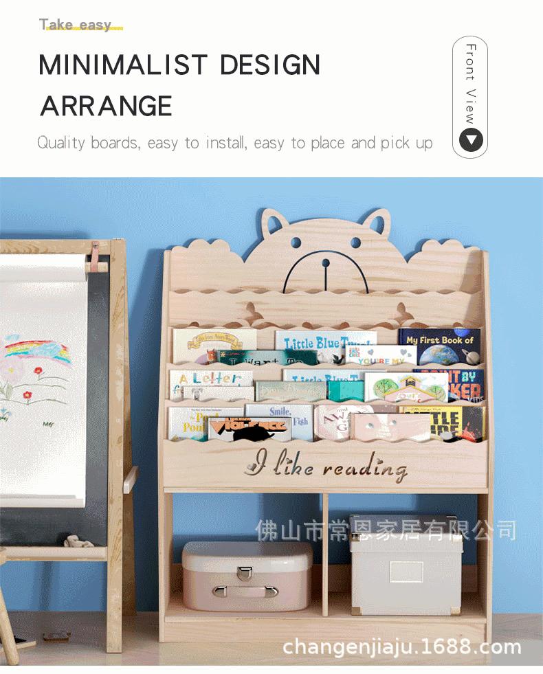 Solid Wood Cool Bear Edition Picture Book Bookcase, Solid Wood Simple Edition Picture Bookcase