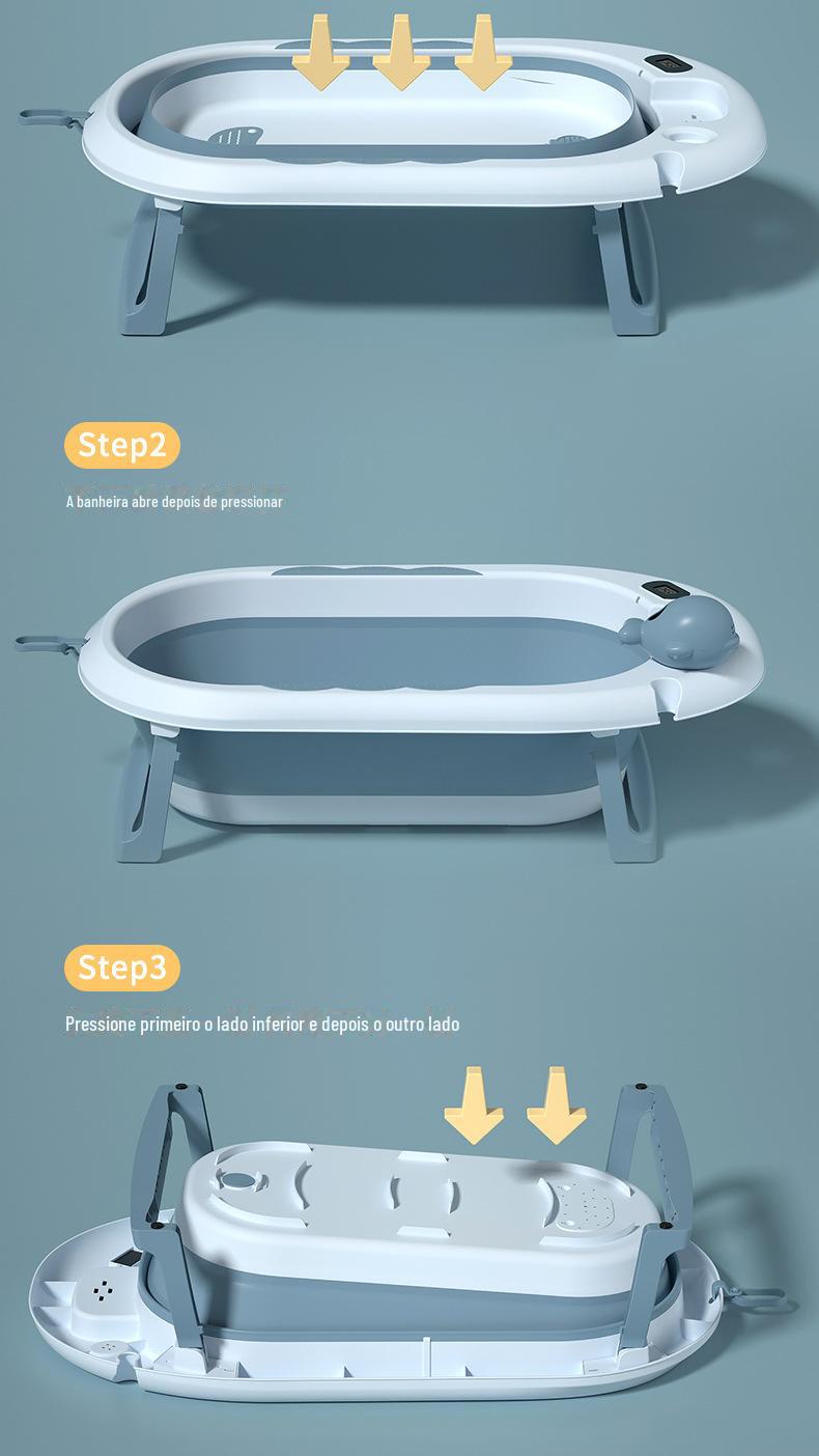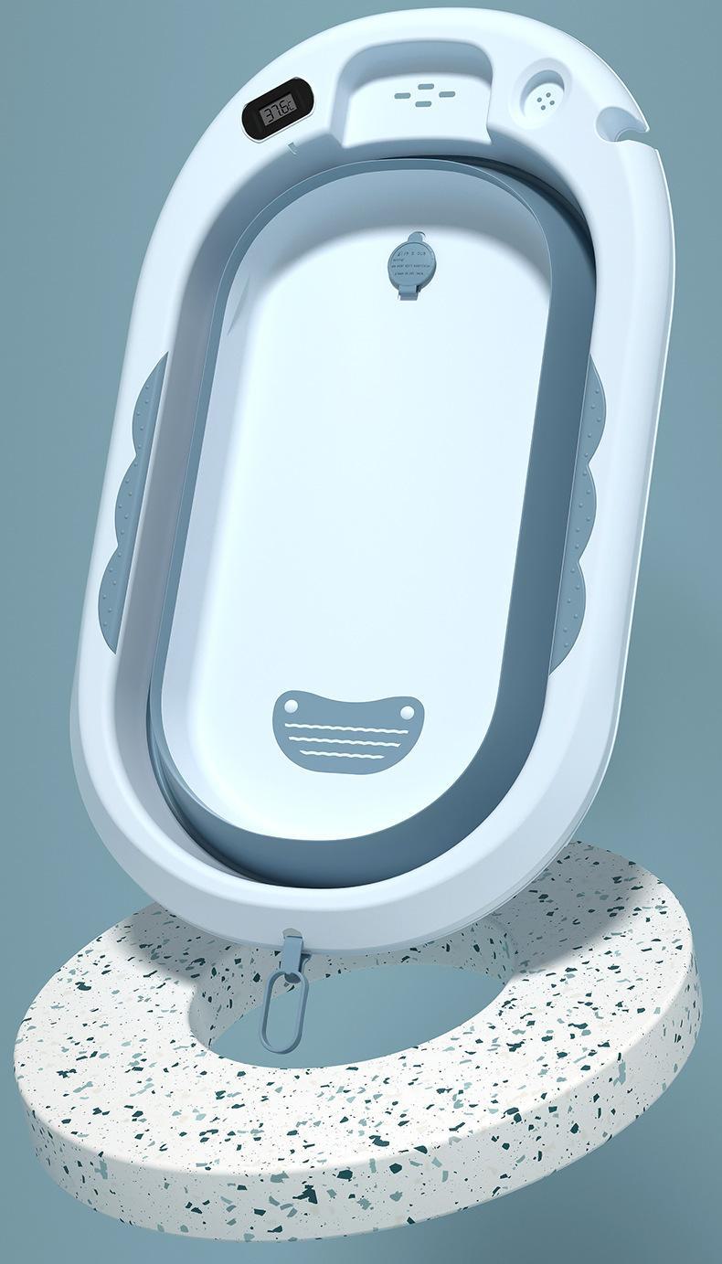 Baby folding tub with warm and quiet blue, Baby folding bathtub quiet blue ribbon temperature sensitive bath m...