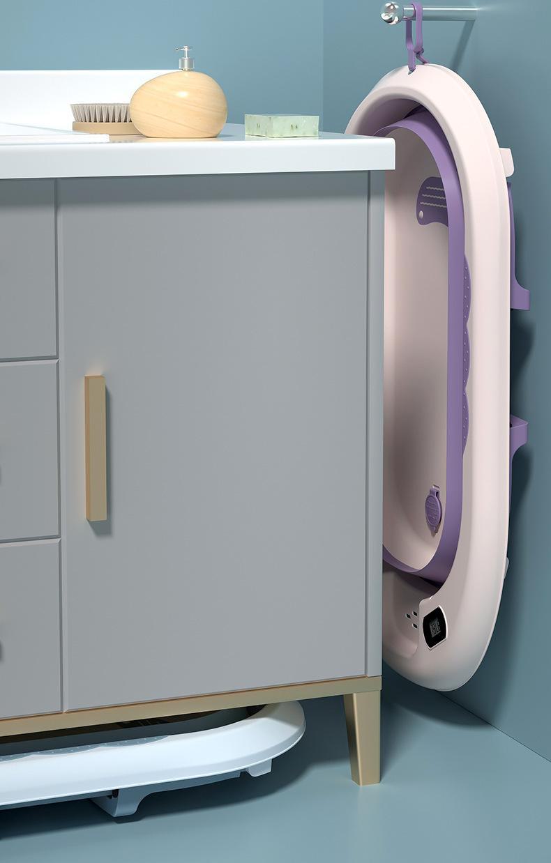 Baby folding bathtub Roland purple belt temperature sensing + bath mat