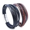 AliExpress Amazon Venda Quente Mão Tecida Multi-Camada Pulseira De Couro Dos Homens De Aço Inoxidável Multi-Camada Pulseira De Couro