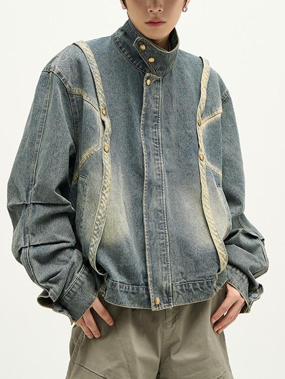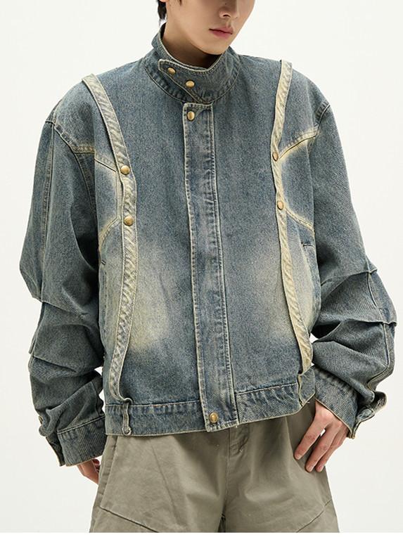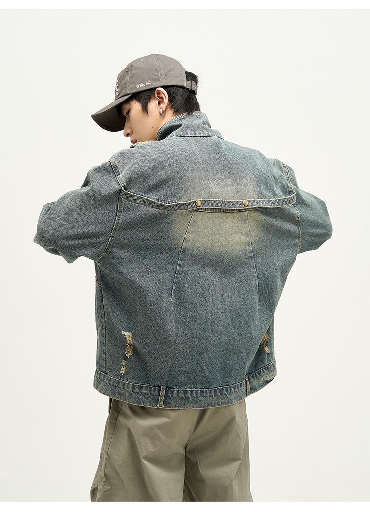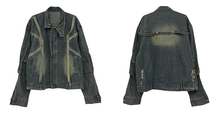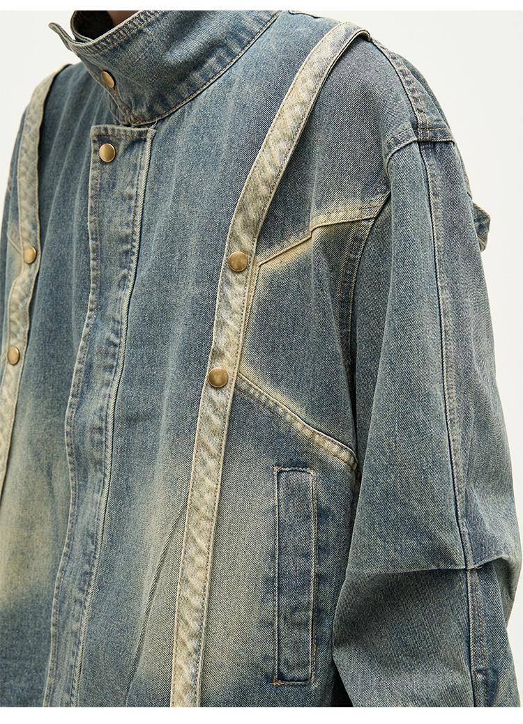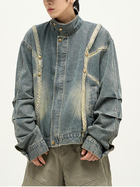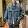 Jaqueta jeans de costura vintage estilo americano masculina primavera e outono solto design senso nicho casual jaqueta de trabalho para todos os jogos