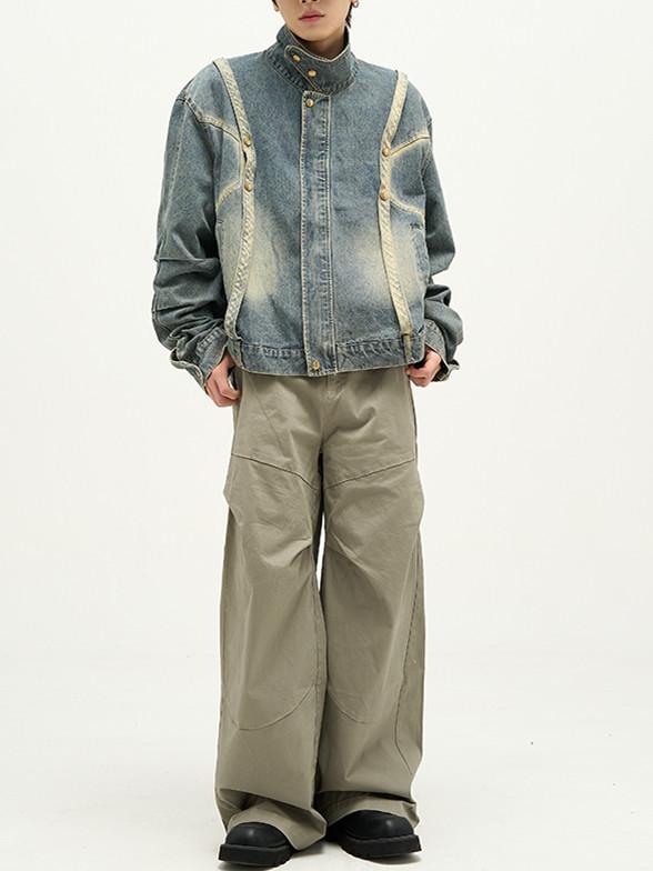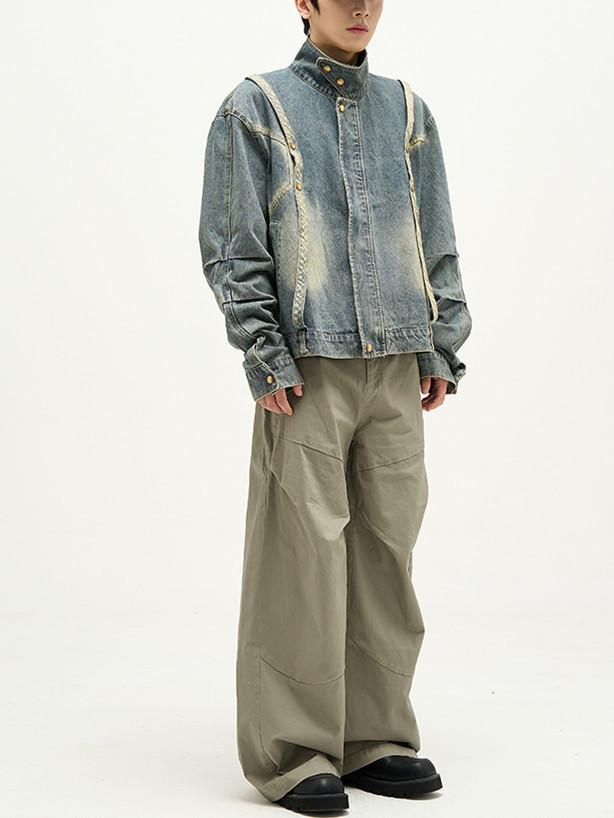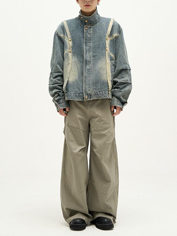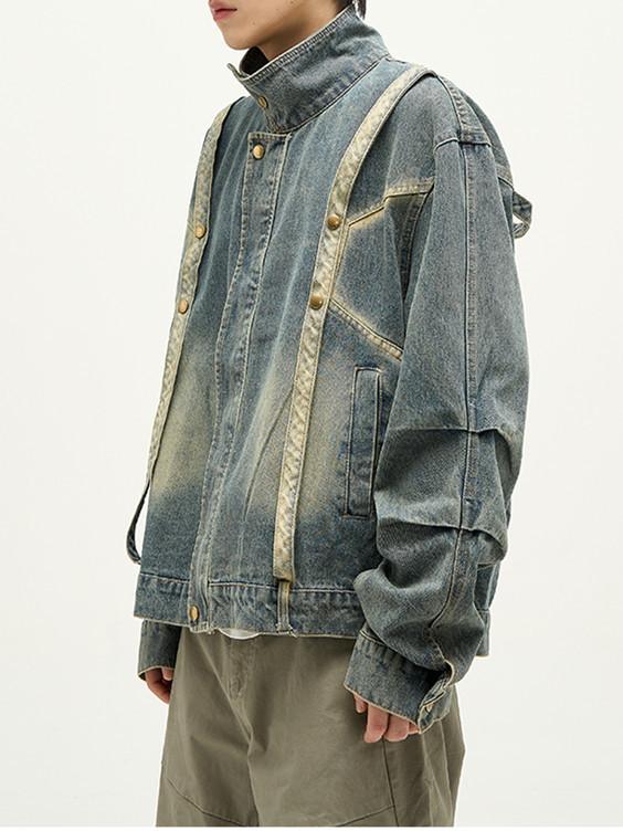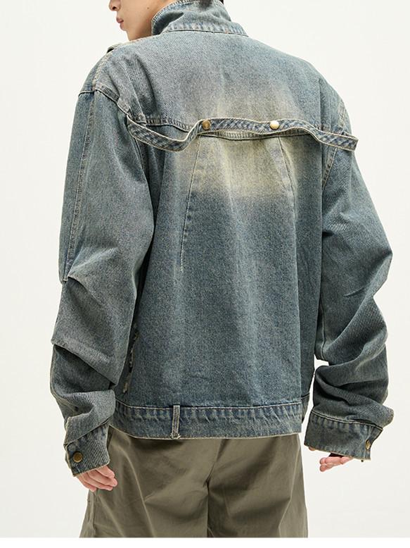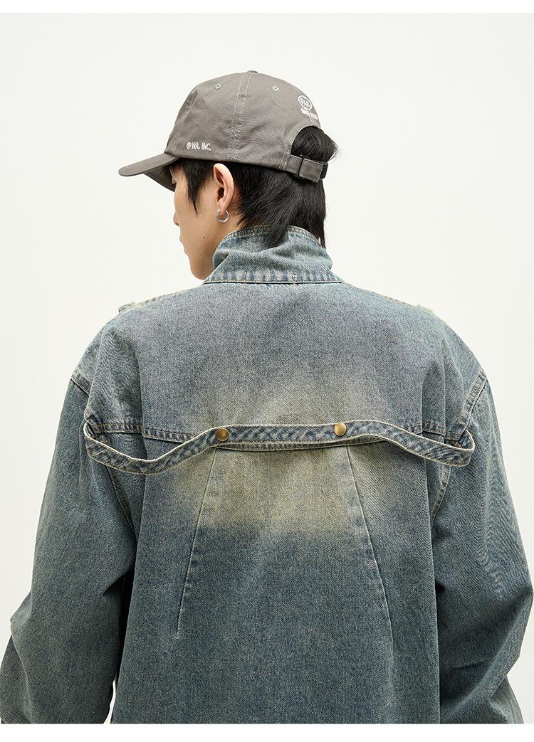 Jaqueta jeans de costura vintage estilo americano masculina primavera e outono solto design senso nicho casual jaqueta de trabalho para todos os jogos