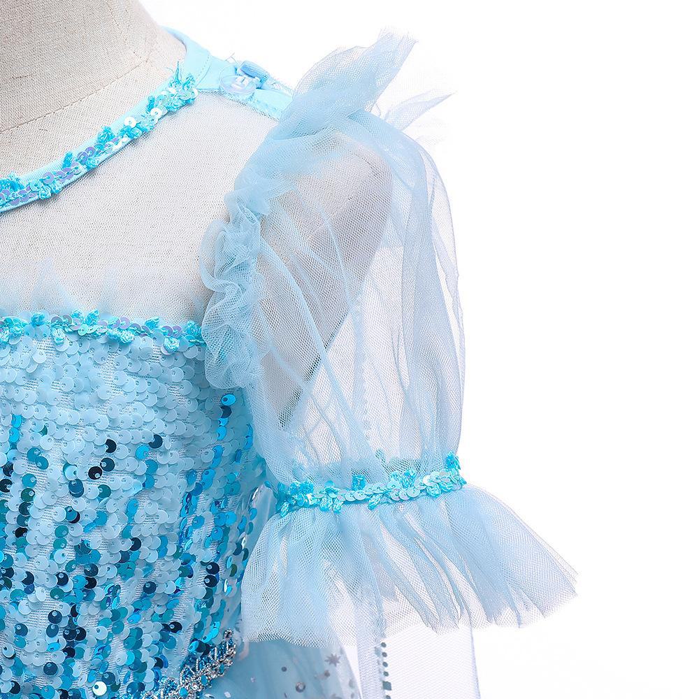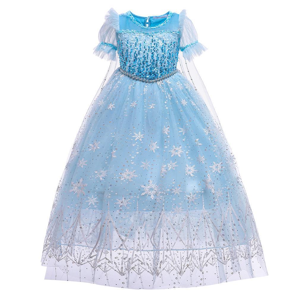 Frozen Elsa vestido de princesa infantil vestido de lantejoulas Elsa vestido de floco de neve capa longa vestido cosplay