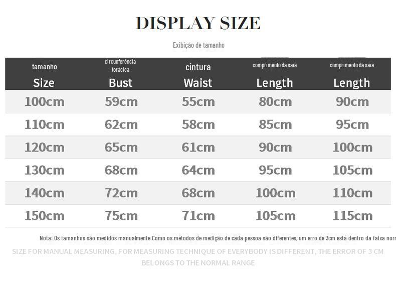Tabela de tamanhos do produto