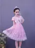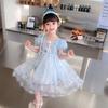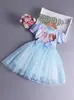 Vestido de princesa Frozen Elsa Elsa Elsa Princess Girl vestido de manga curta com capa de malha vestido removível