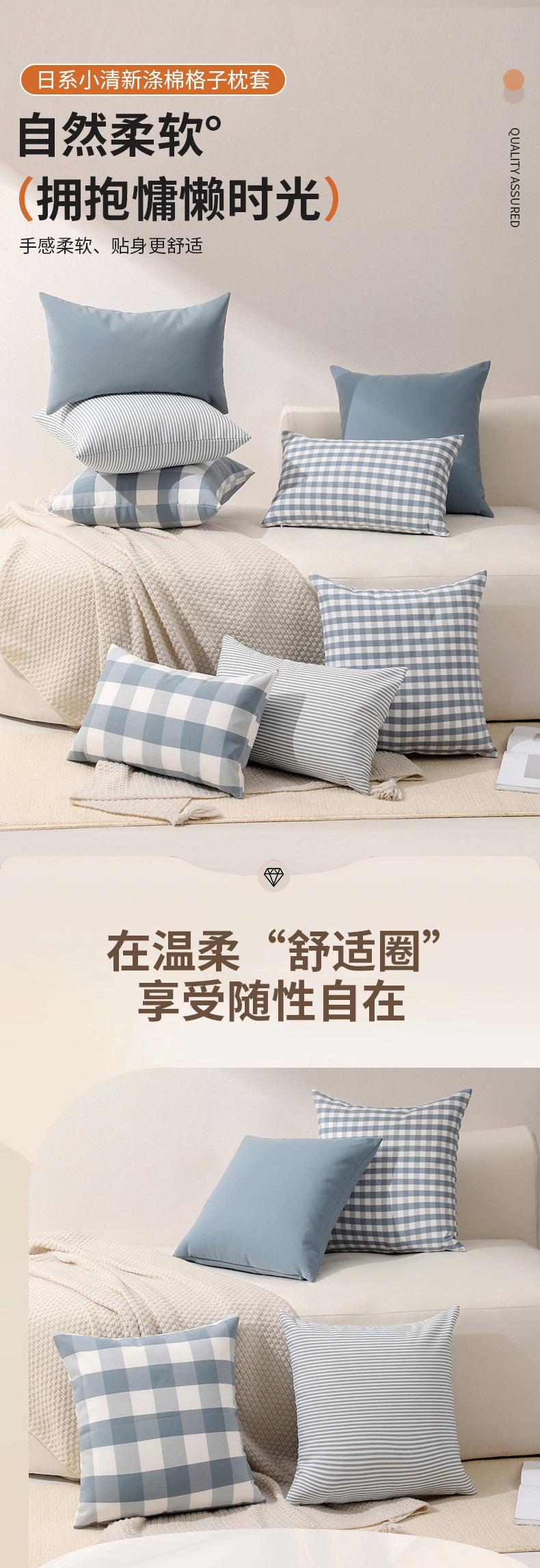 Casa quarto sofá almofada cobrir Blue Gray série japonesa pequena fronha xadrez de poliéster fresco fabricantes de fronha por atacado