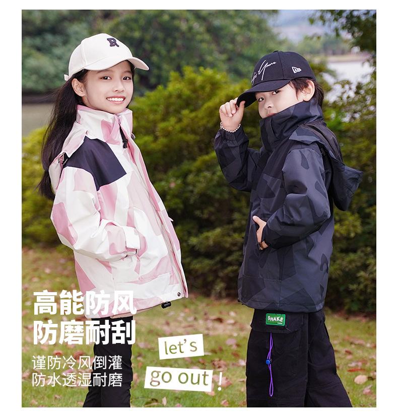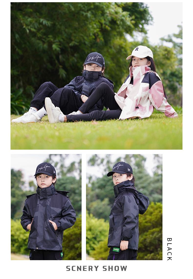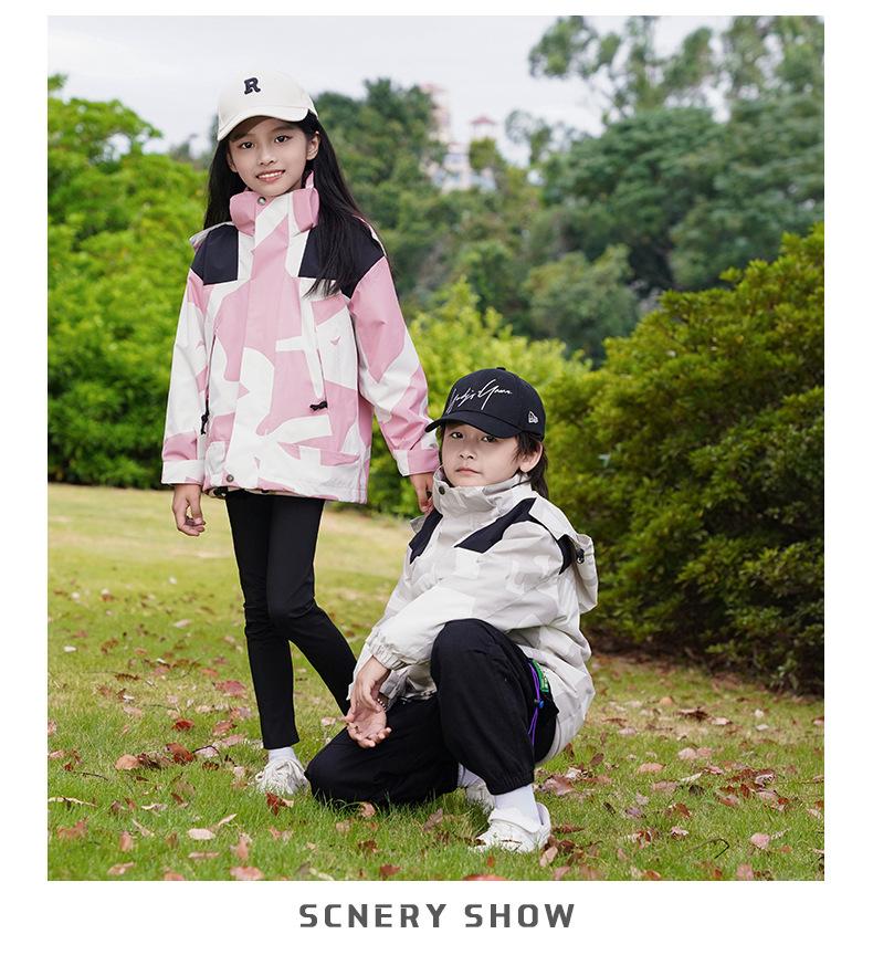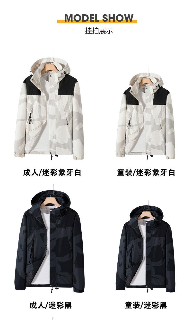 Jaqueta Três-Em-Um para Exterior com Logotipo Estampado Personalizado, Conjunto de Duas Peças para Ciclismo, Caminhada, Combinação Familiar e Uso em Grupo, Camuflada