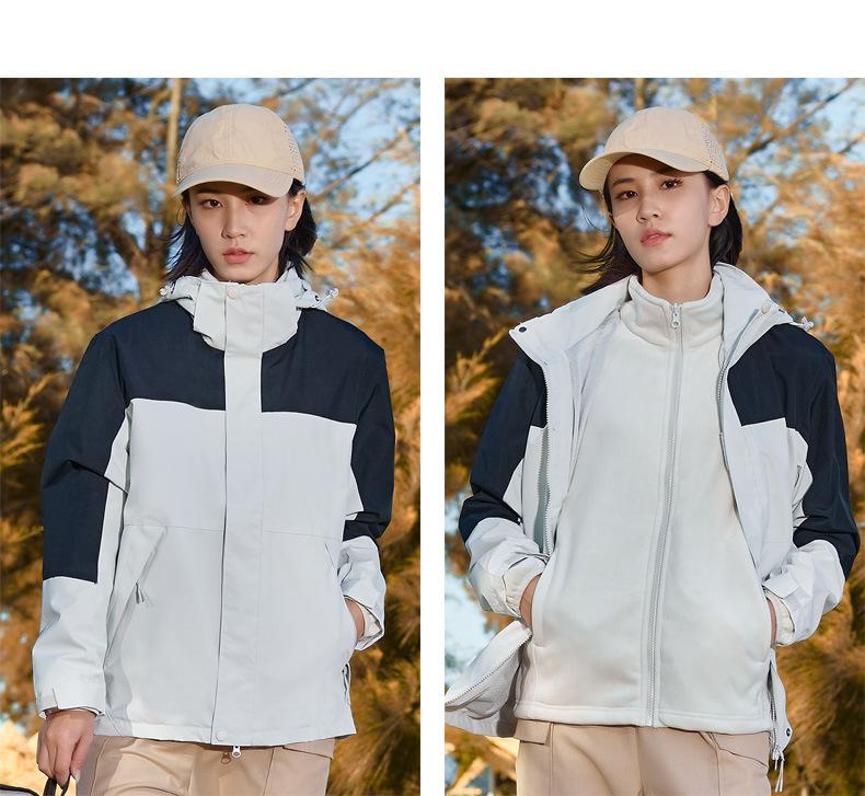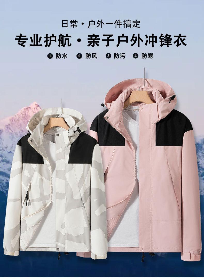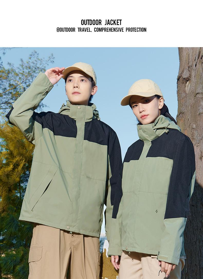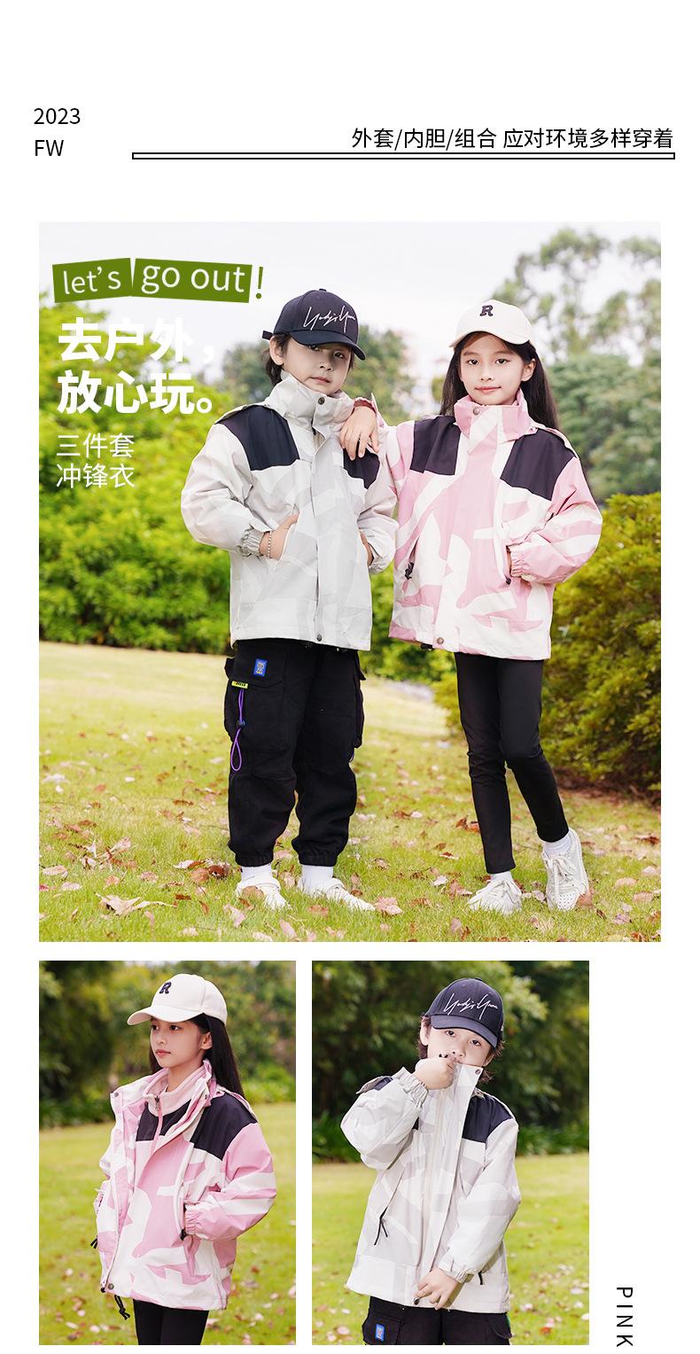 Jaqueta Três-Em-Um para Exterior com Logotipo Estampado Personalizado, Conjunto de Duas Peças para Ciclismo, Caminhada, Combinação Familiar e Uso em Grupo, Camuflada