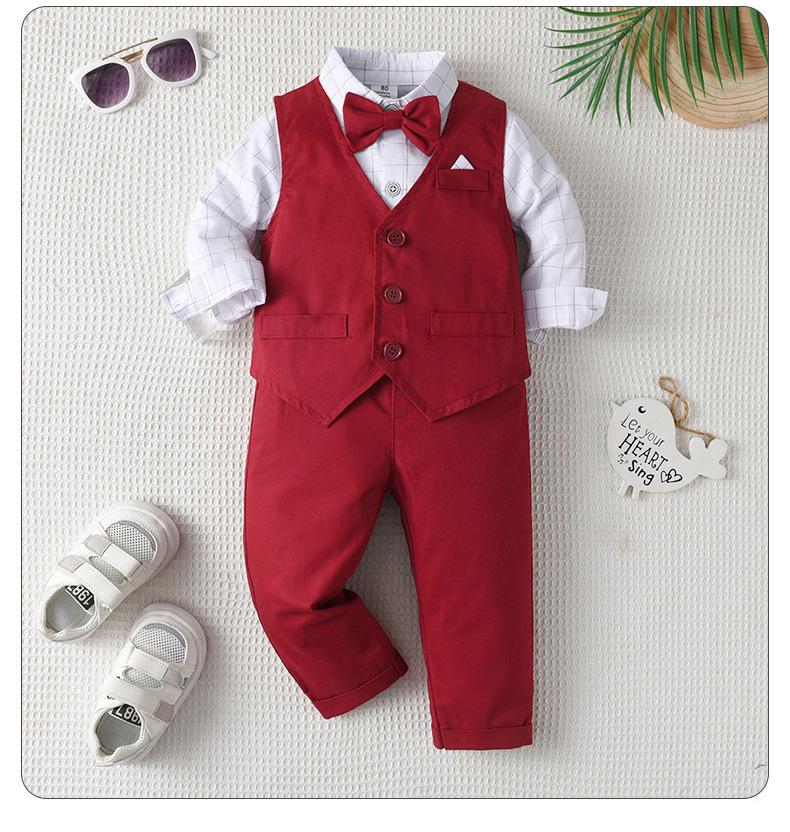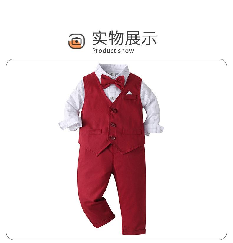 Comércio exterior roupas infantis colete terno britânico três peças terno infantil primavera e outono vestido meninos roupas de outono roupas de bebê