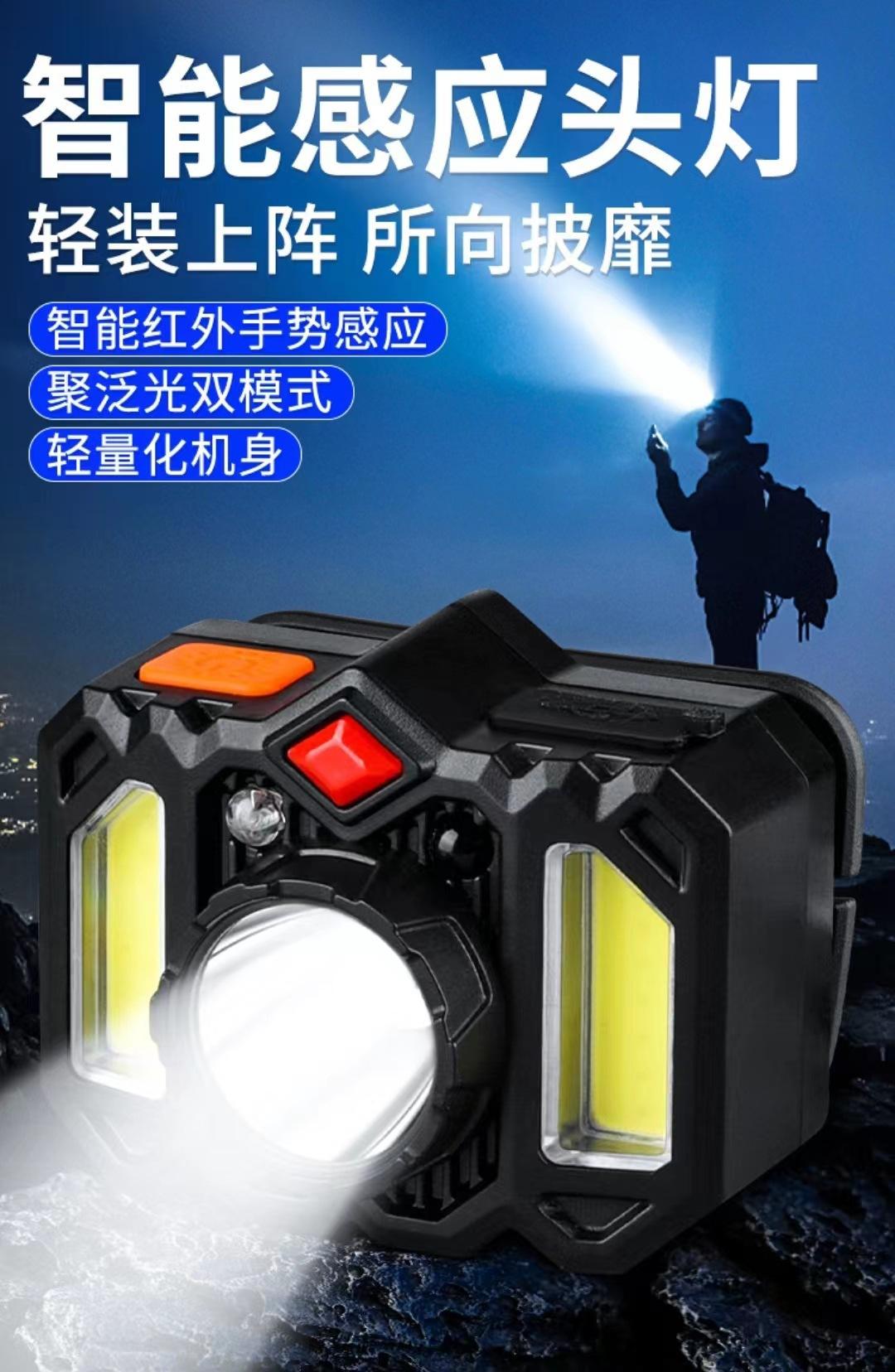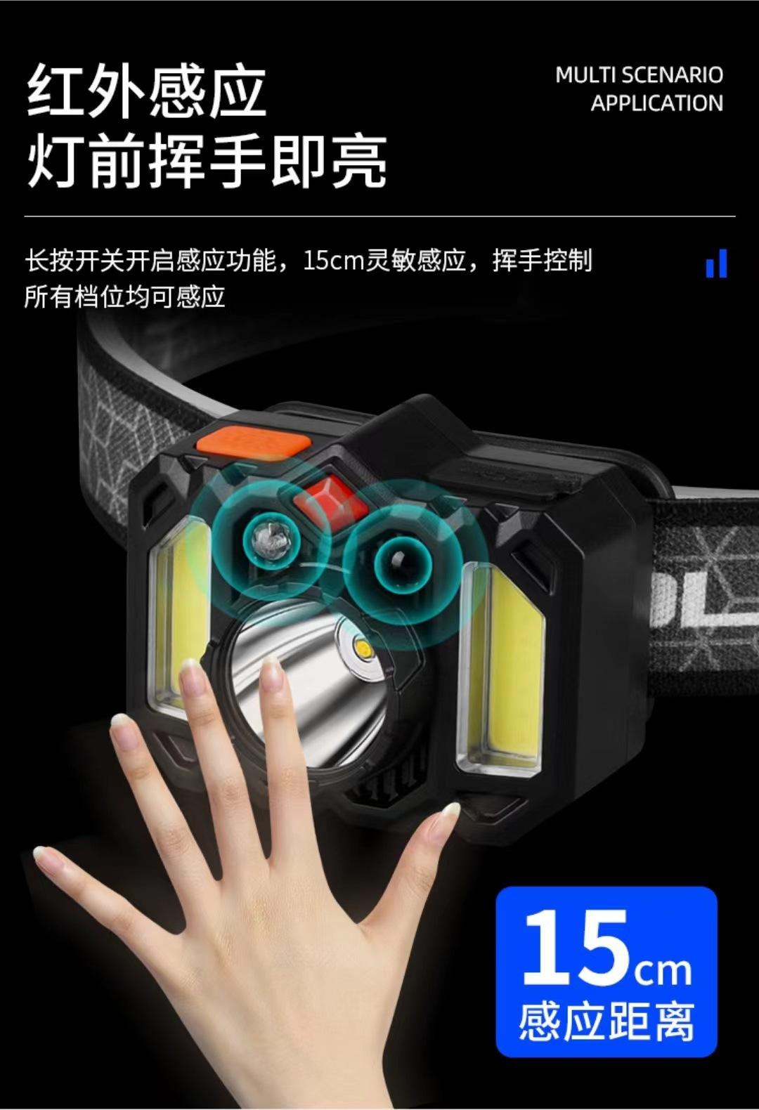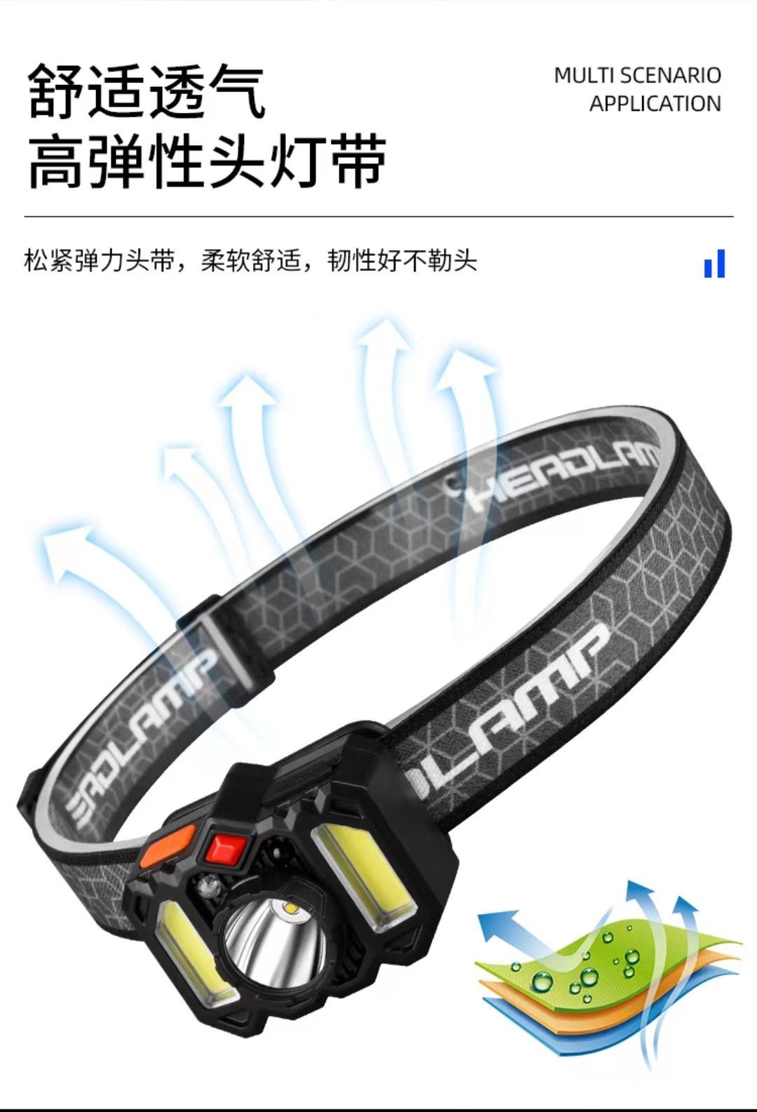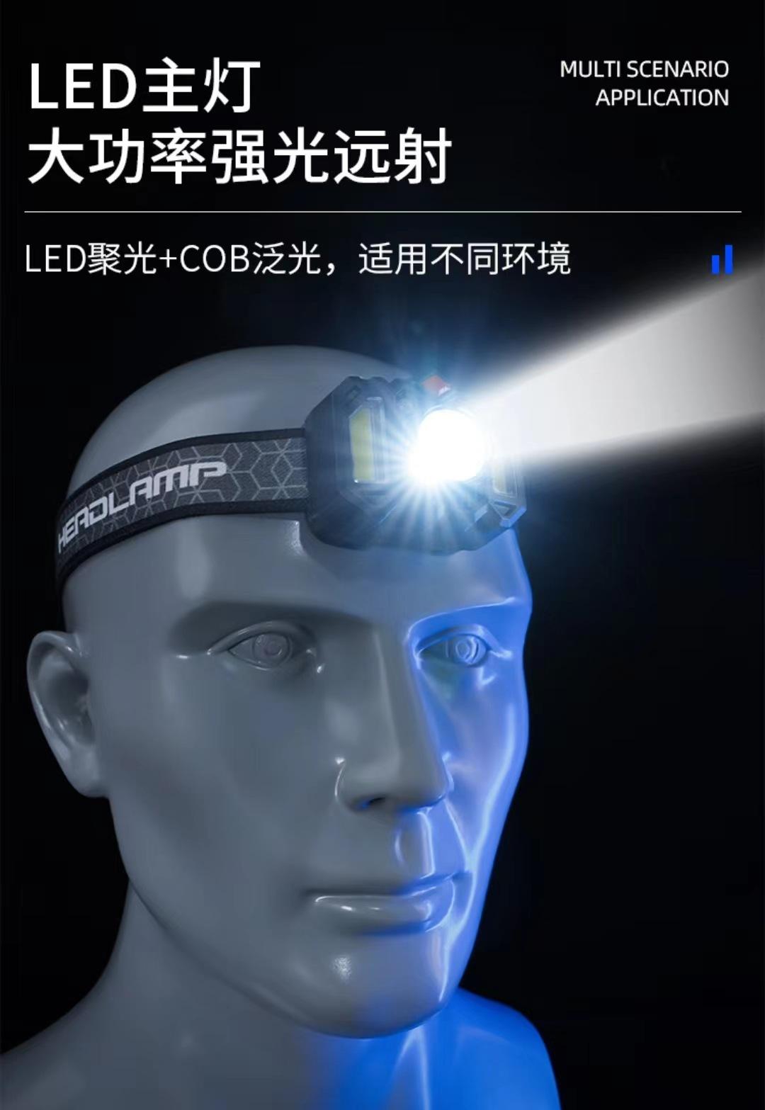 Farol transfronteiriço de indução de nova onda ao ar livre LED lanterna montada na cabeça lâmpada de pesca COB ao ar livre noite funcionando farol de luz forte