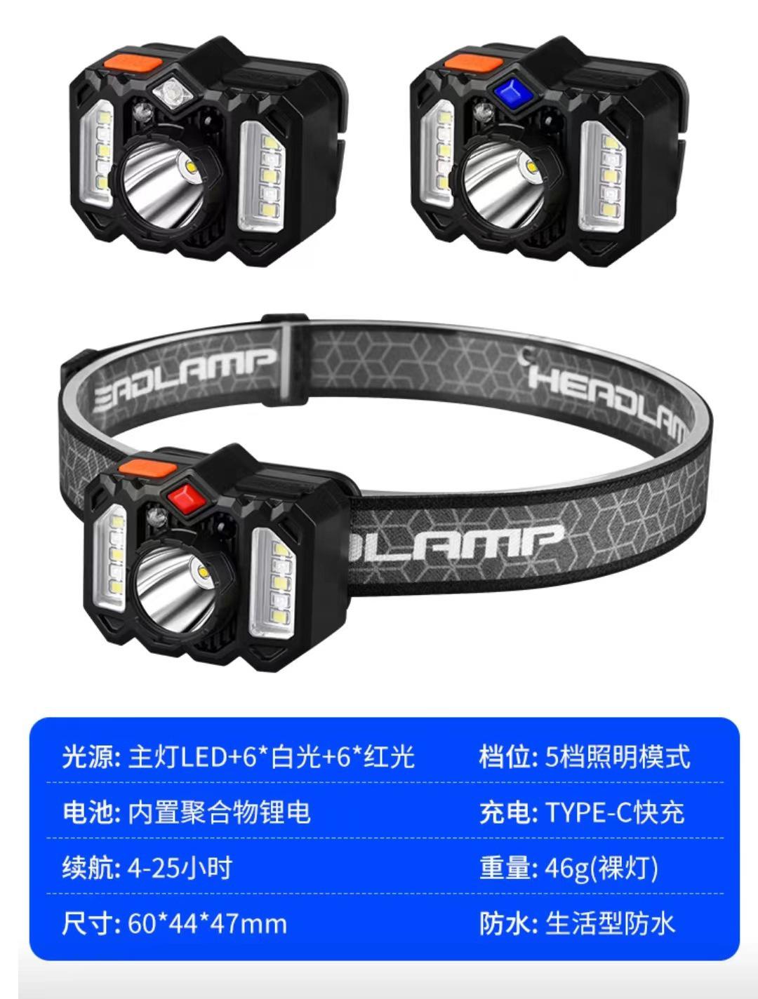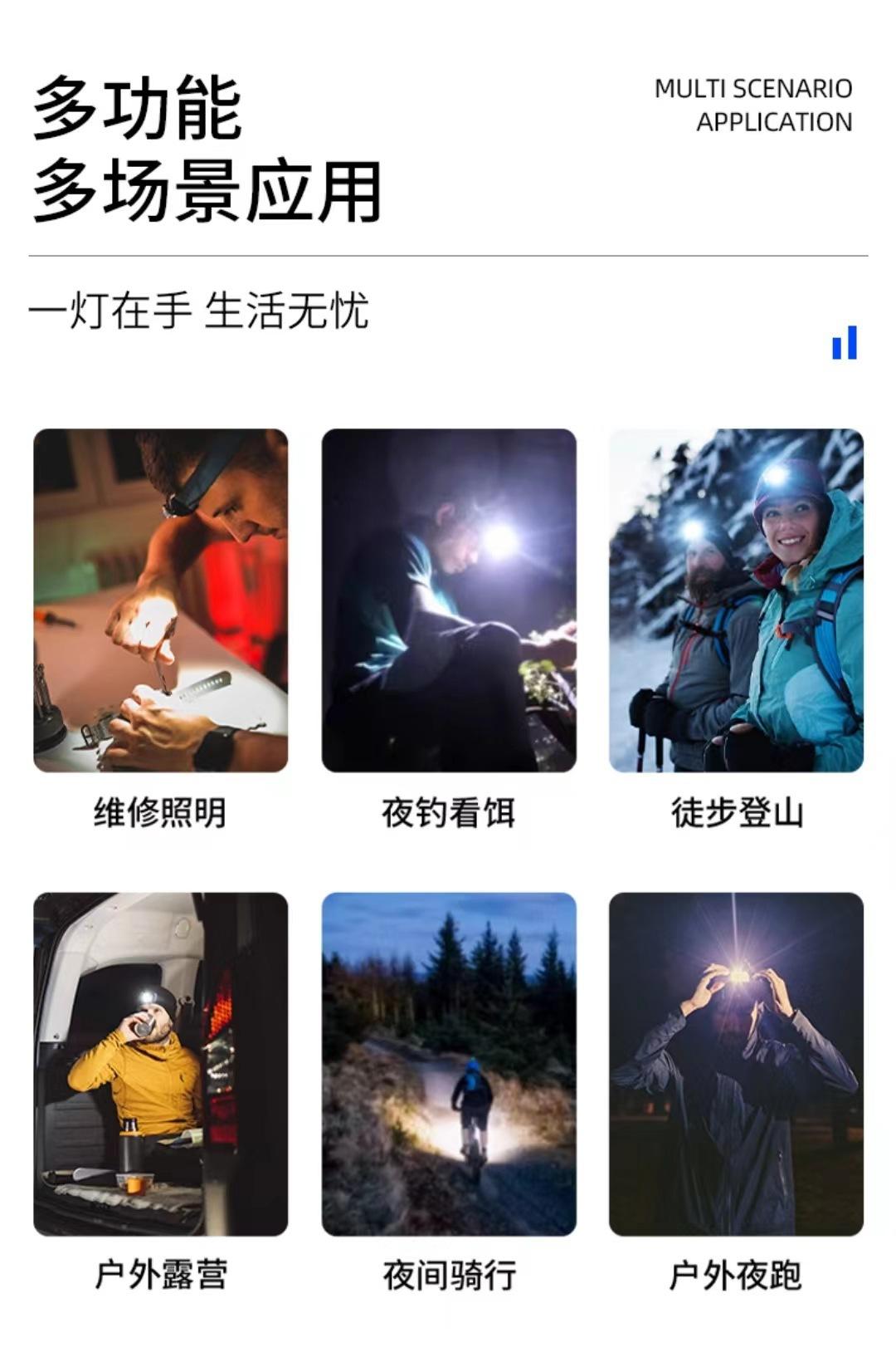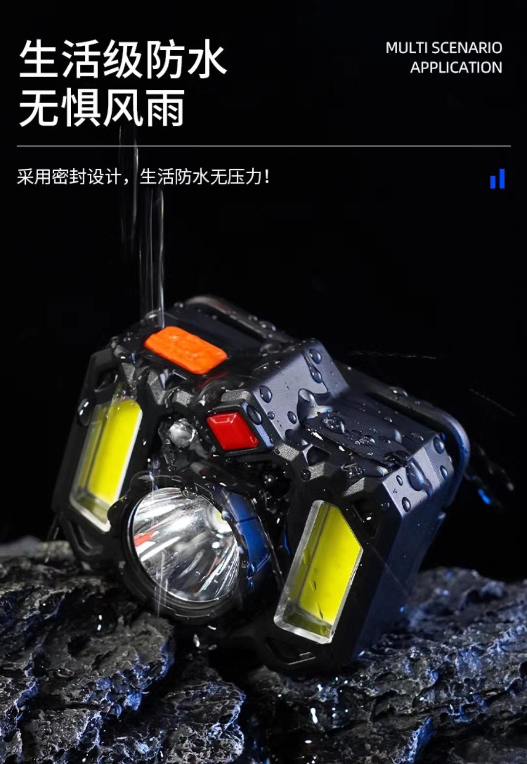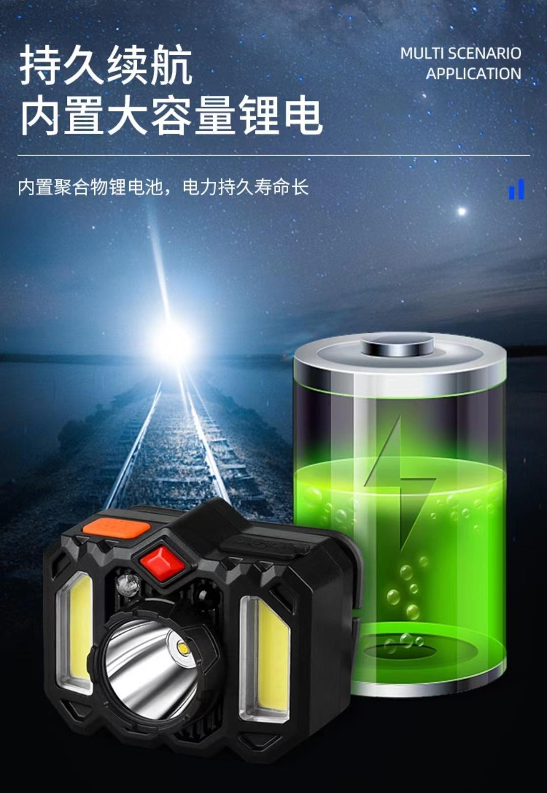 Farol transfronteiriço de indução de nova onda ao ar livre LED lanterna montada na cabeça lâmpada de pesca COB ao ar livre noite funcionando farol de luz forte