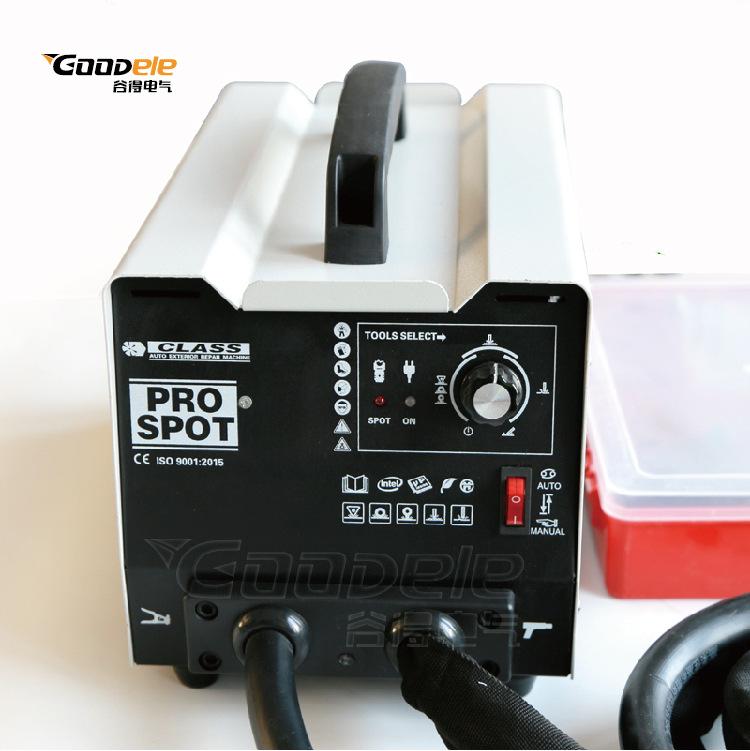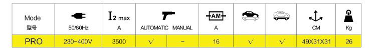 Com uma corrente de saída máxima de 3500 A, o PRO SPOT é o produto ideal para puxar e endireitar elementos da carroceria (capôs, portas, painéis de teto). A versatilidade deste produto torna-o uma solução completa. Graças ao seu baixo consumo de energia, pode funcionar com uma simples fonte de alimentação de 230V.
