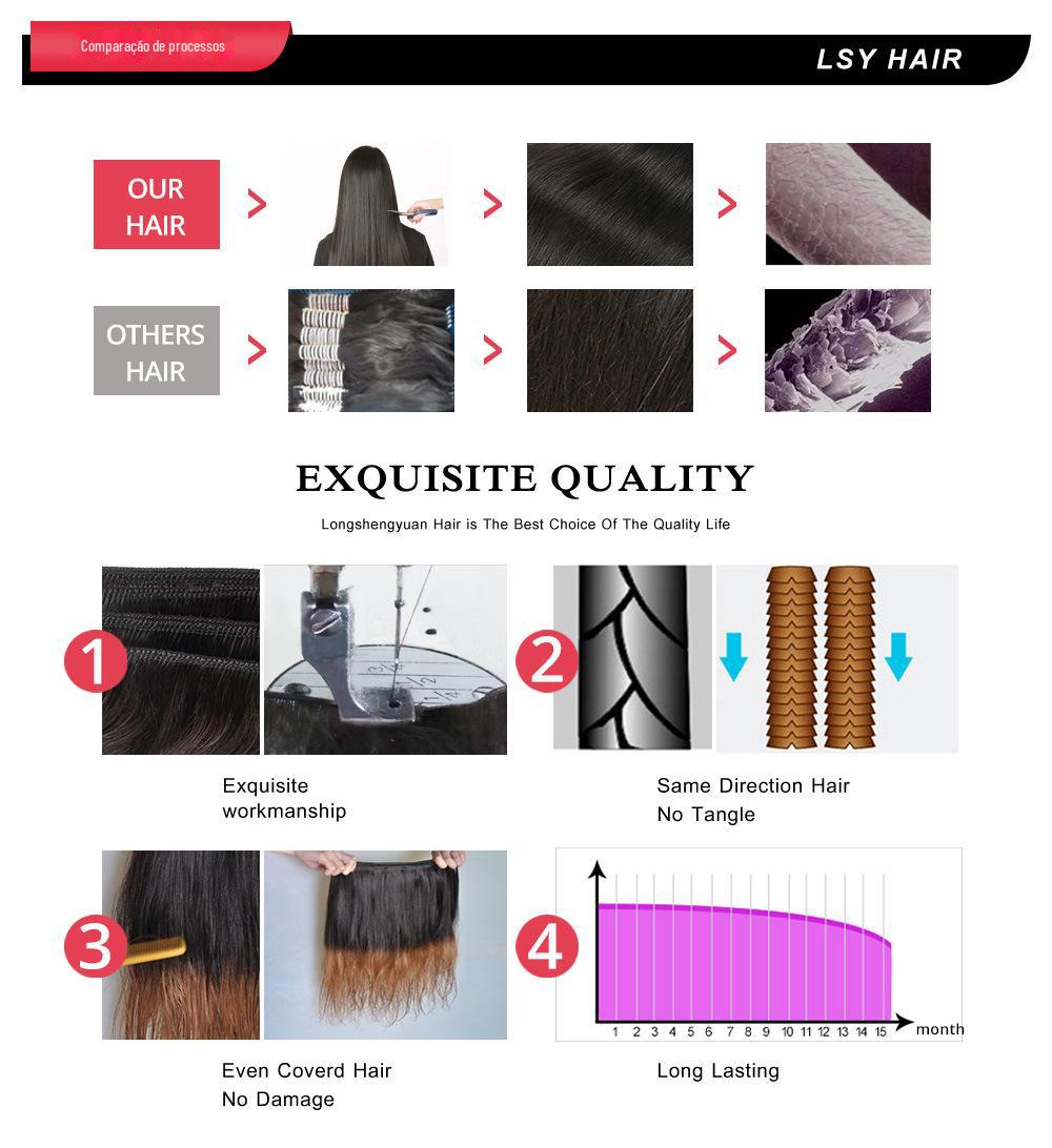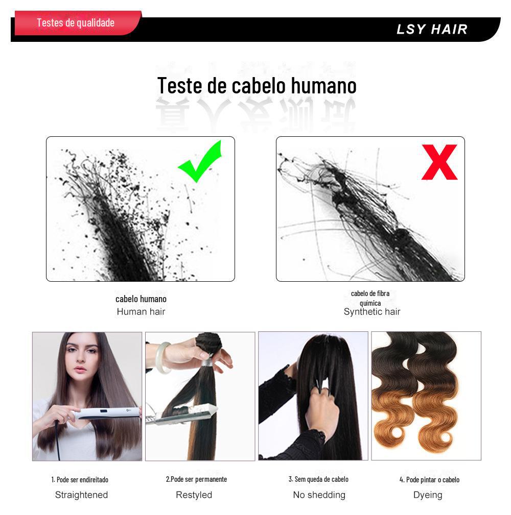qualidade: Macio, suave, sem emaranhados, sem queda de cabelo. Pode ser permanente, tingido e reestilizado.