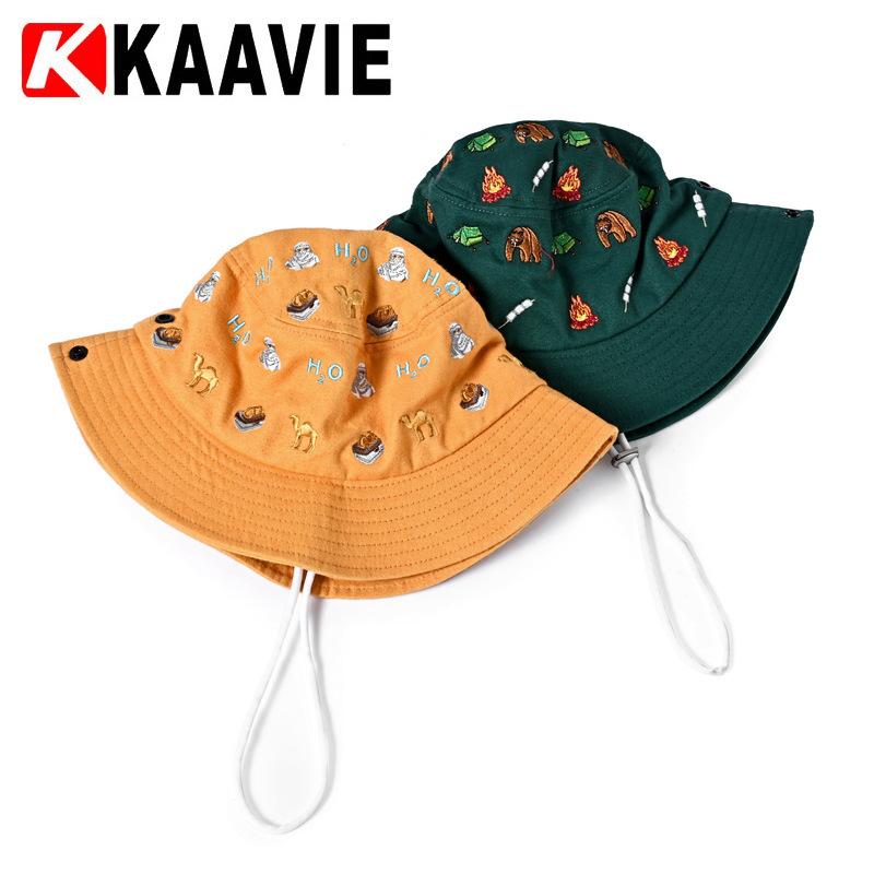 Kaiwei chapéu indústria dos desenhos animados chapéu de pescador chapéu de pesca ao ar livre viagem proteção solar chapéu lateral à prova de vento chapéu de corda personalizável