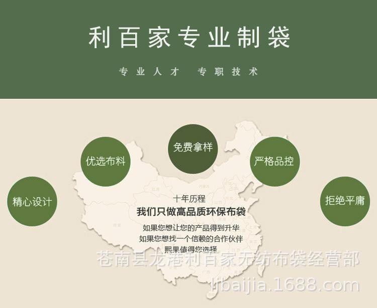 Fábrica de sacos não tecidos do condado de Cangnan Longgang LibaijiaÉ um fabricante especializado na produção, venda e design de produtos publicitários e promocionais. Nossa empresa está localizada em Cangnan, Wenzhou, uma cidade de impressão na China e base de produção de presentes. Temos recursos e capacidade de produção suficientes. Nossos principais produtos incluem camisas publicitárias, aventais publicitários, aventais, sacolas não tecidas e outras séries de produtos promocionais, entre os quais camisas publicitárias e camisas culturais são feitas principalmente de tecidos 100% algodão, 100% poliéster, poliéster-algodão (TC), os aventais são feitos principalmente de PVC, pano de areia d'água e outros materiais, sacos não tecidos. É feito principalmente de tecidos não tecidos e pode ser produzido de acordo com as necessidades do cliente. Qualidade e reputação em primeiro lugar são nossos objetivos consistentes.