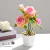 Flor Artificial Rosa de Três Cabeças Pequeno Bonsai Estilo Pastoral Flor Simulada Decoração de Casa Interna Flor Artificial Planta em Vaso Simulada