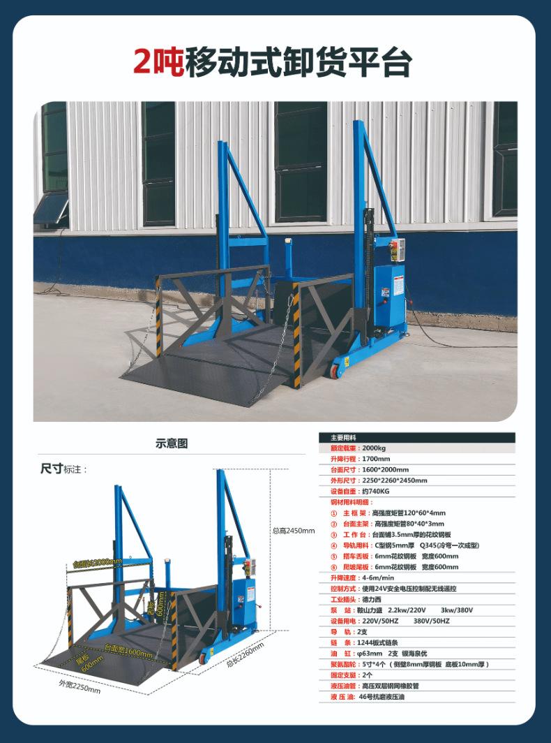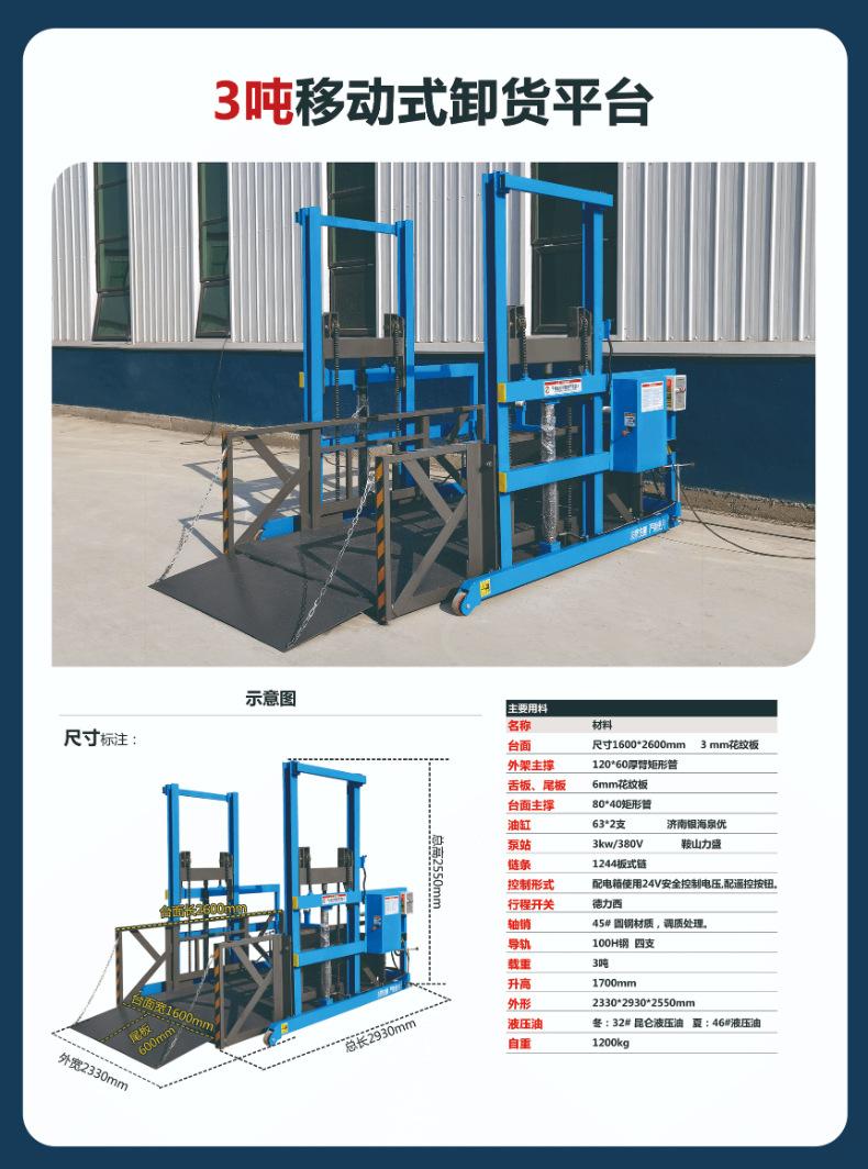 Plataforma móvel de carga e descarga de contêineres, elevador de carga hidráulico e elétrico