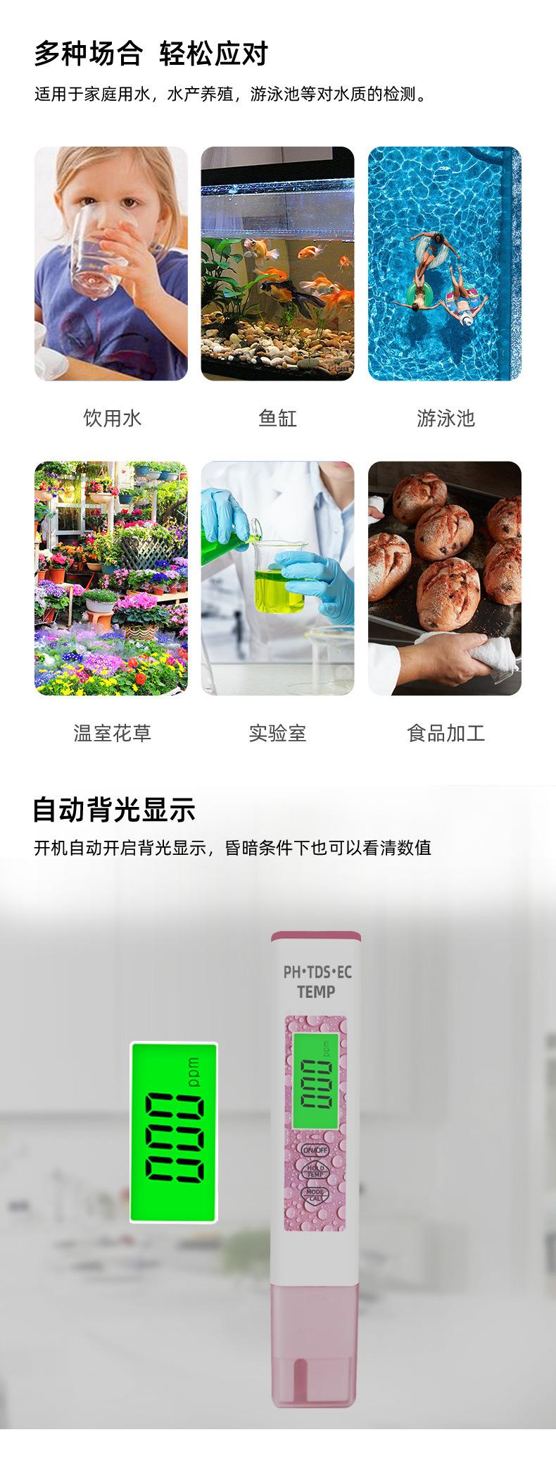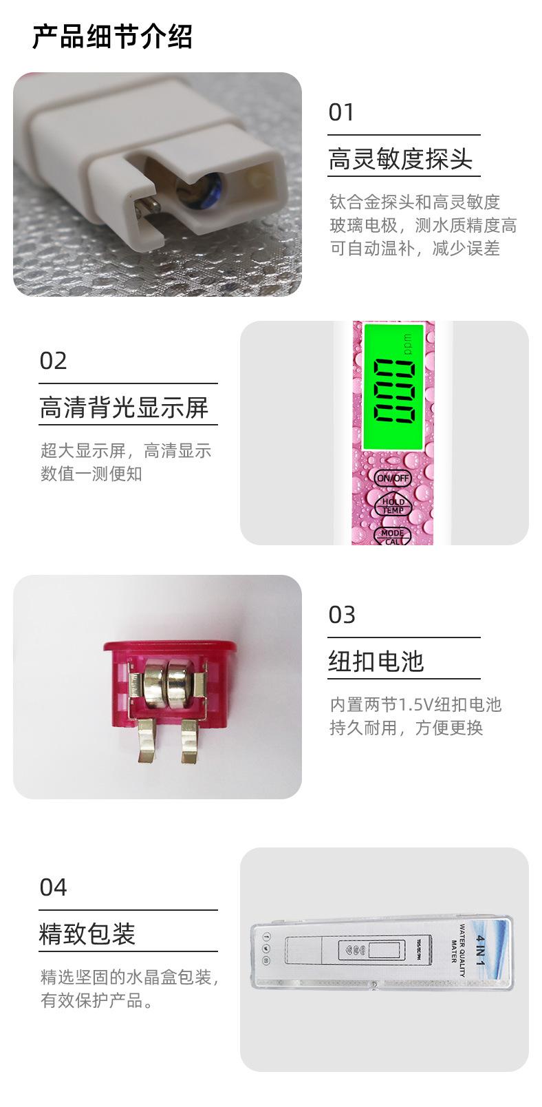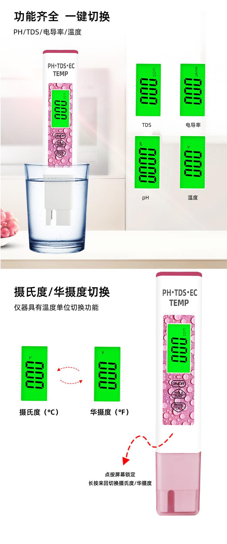 Caneta tds transfronteiriça, detecção de qualidade da água, quatro em um, caneta de teste de água ec, local de fábrica, medidor de ph, valor de ph, testador, medidor de ph