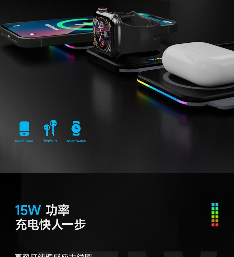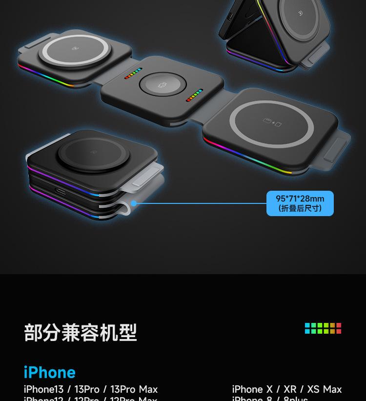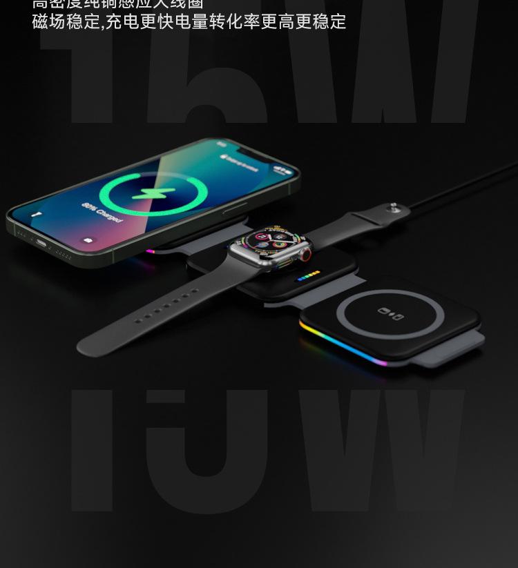 Fone de ouvido dobrável multifuncional para celular qi2 carregador sem fio três em um adequado para Apple Watch Magsafe carregamento rápido