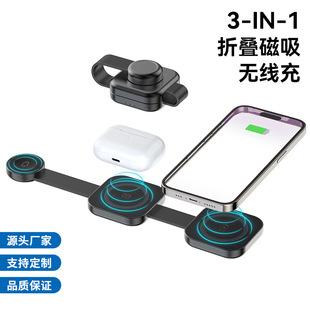 Adequado para Celulares, Fones de Ouvido, Relógios, Carregamento Sem Fio, Carregador Magnético Sem Fio Três-Em-Um Dobrável Multifuncional, Suporte Fino e Leve