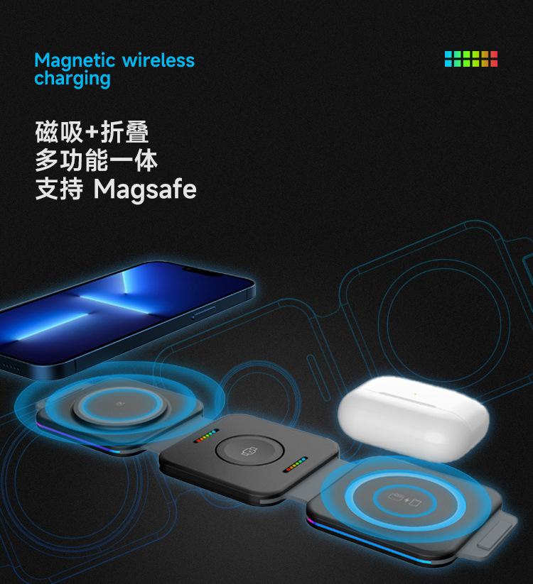 Carregador sem fio para celular três em um carregador magnético sem fio Magsafe adequado para Huawei Apple placa de carregamento rápido dobrável
