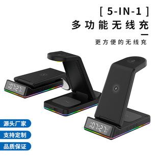 Luz noturna de carregamento sem fio multifuncional para mesa, adequada para carregador de celular Apple Watch, cinco em um, carregamento sem fio vertical