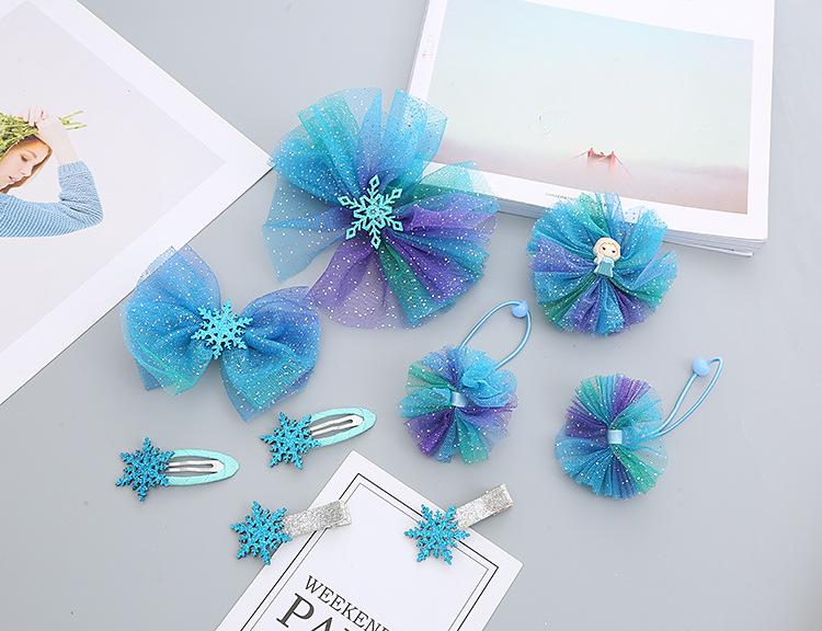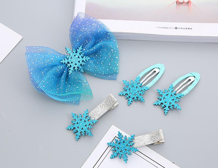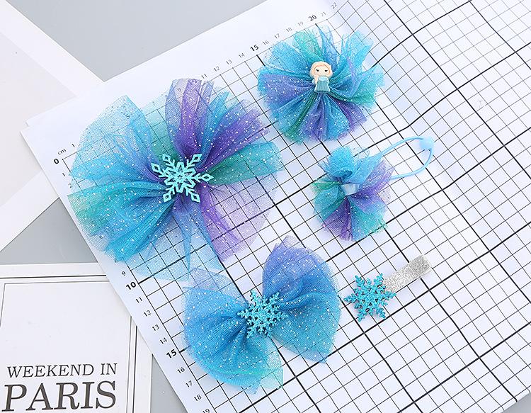 Malha Azul Hairpin Bow Hairband Set Headwear bonito Princesa Snowflake Hairpin BB Clip Head Clip