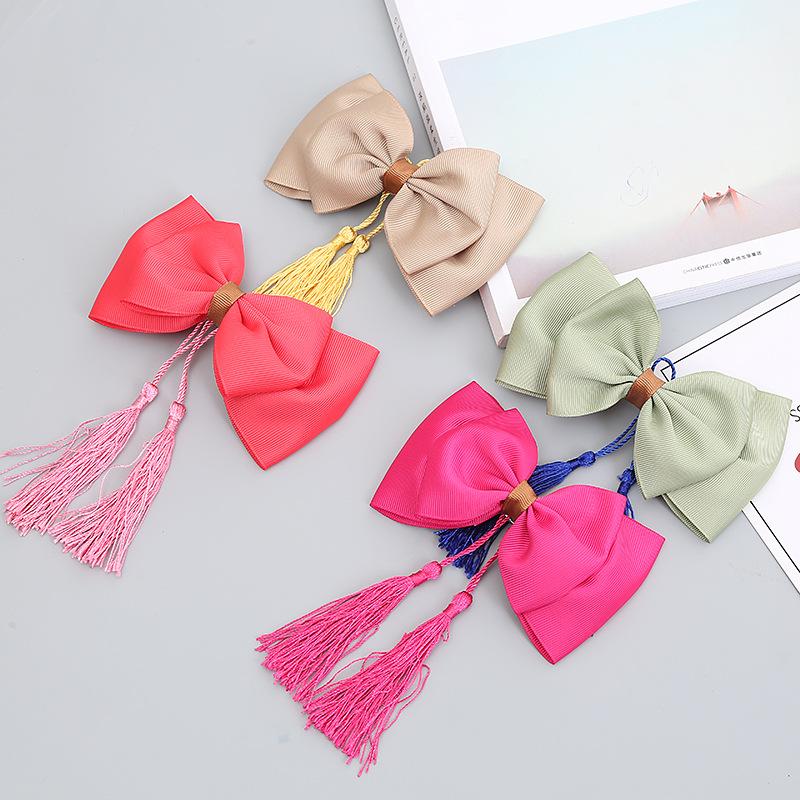 Crianças estilo chinês tridimensional artesanal grande arco borla hairpin menina estilo nacional cocar princesa pano acessórios para o cabelo