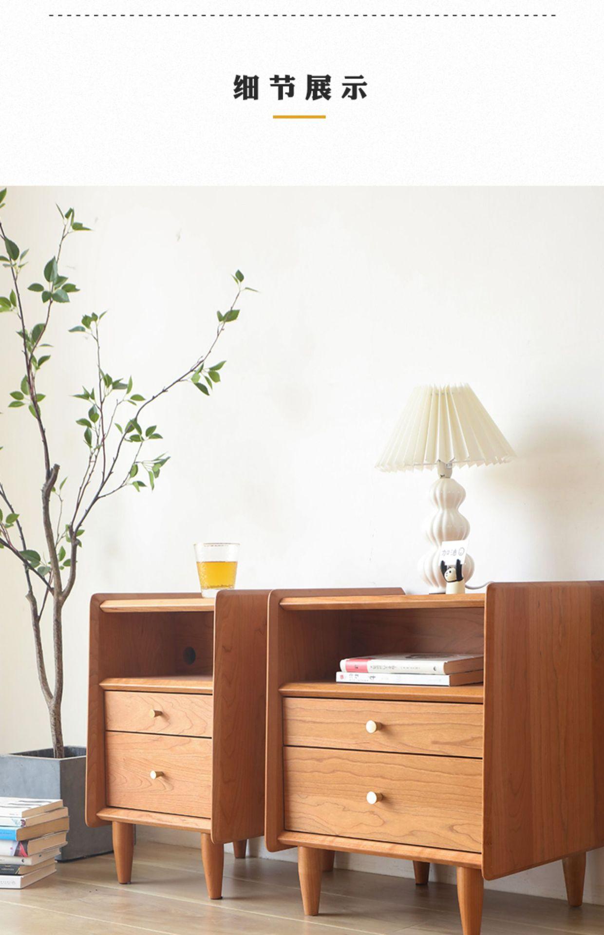 Mesa de cabeceira de madeira de cereja nórdica Venda por atacado madeira maciça moderna simples estilo japonês armário de cabeceira de madeira branco carvalho armário de armazenamento