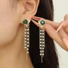 Compre Brincos de esmeralda estilo palácio vintage com agulha de prata, lindos brincos incrustados de diamantes, brincos de corrente de borla de pérola longa super fada para mulheres no atacado no Joom.pro