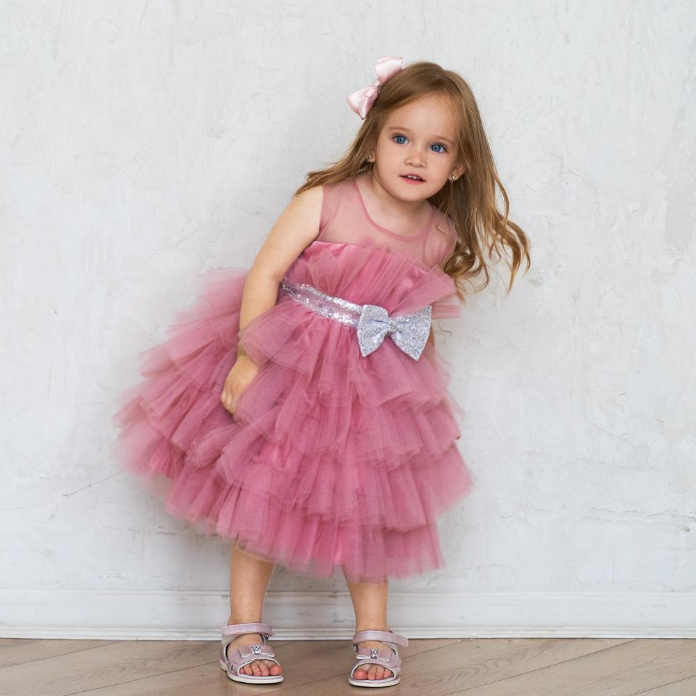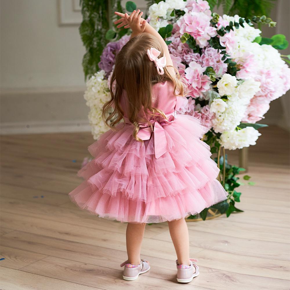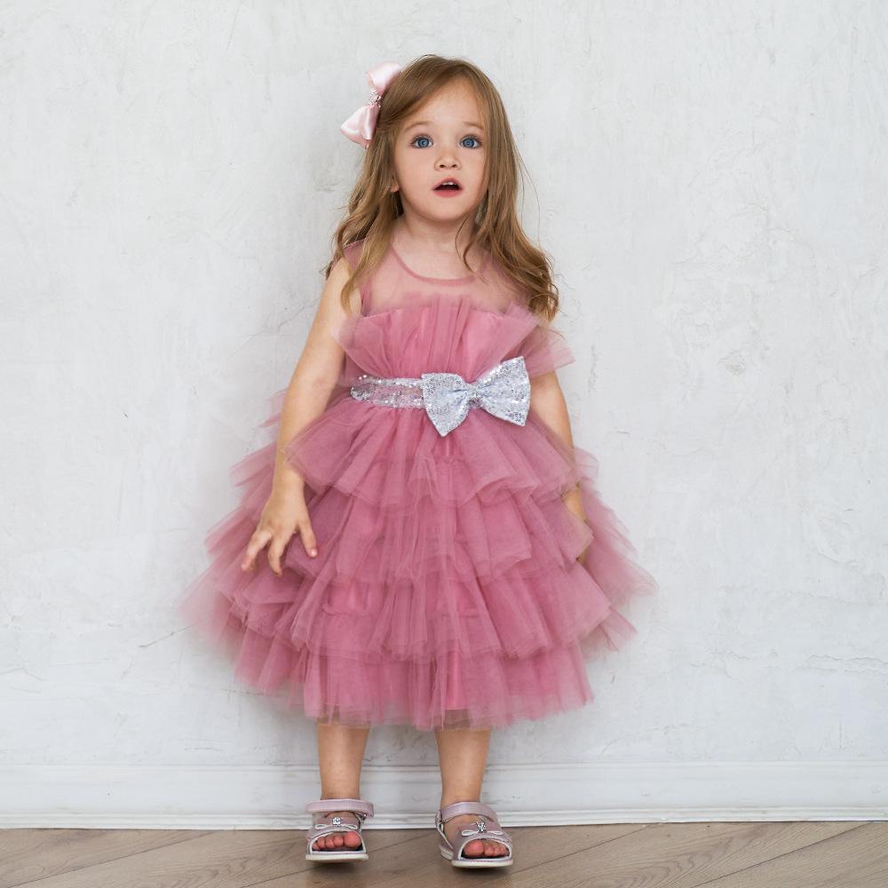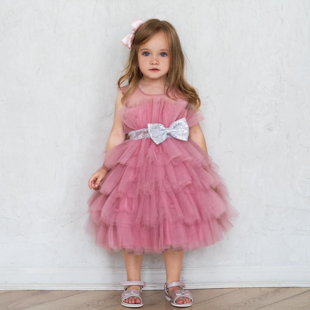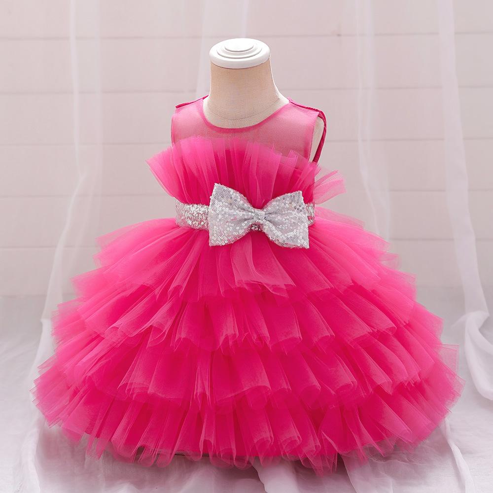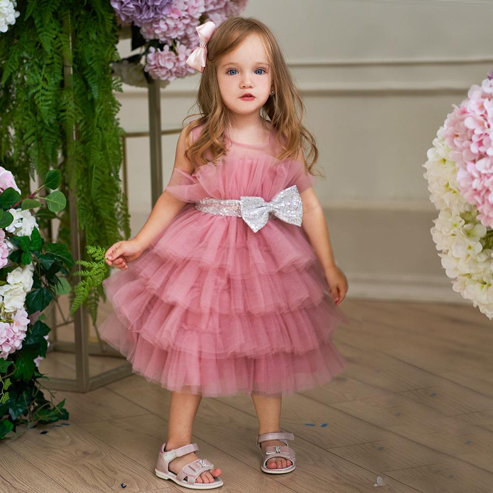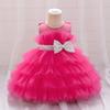 Vestido de bebê de um ano para menina, vestido bufante com laço, vestido de princesa europeu e americano em malha