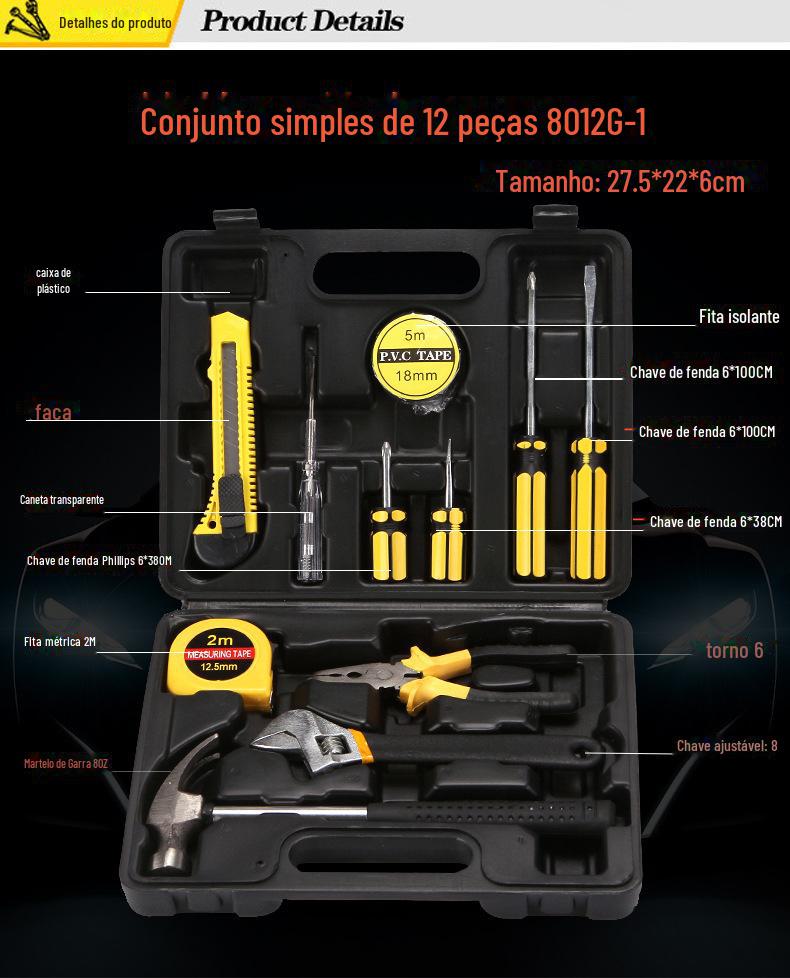 | Pequena caixa de ferramentas combinada de 12 peças, presente publicitário, conjunto de ferramentas portátil, ferramentas de hardware doméstico para carro 8012e |
