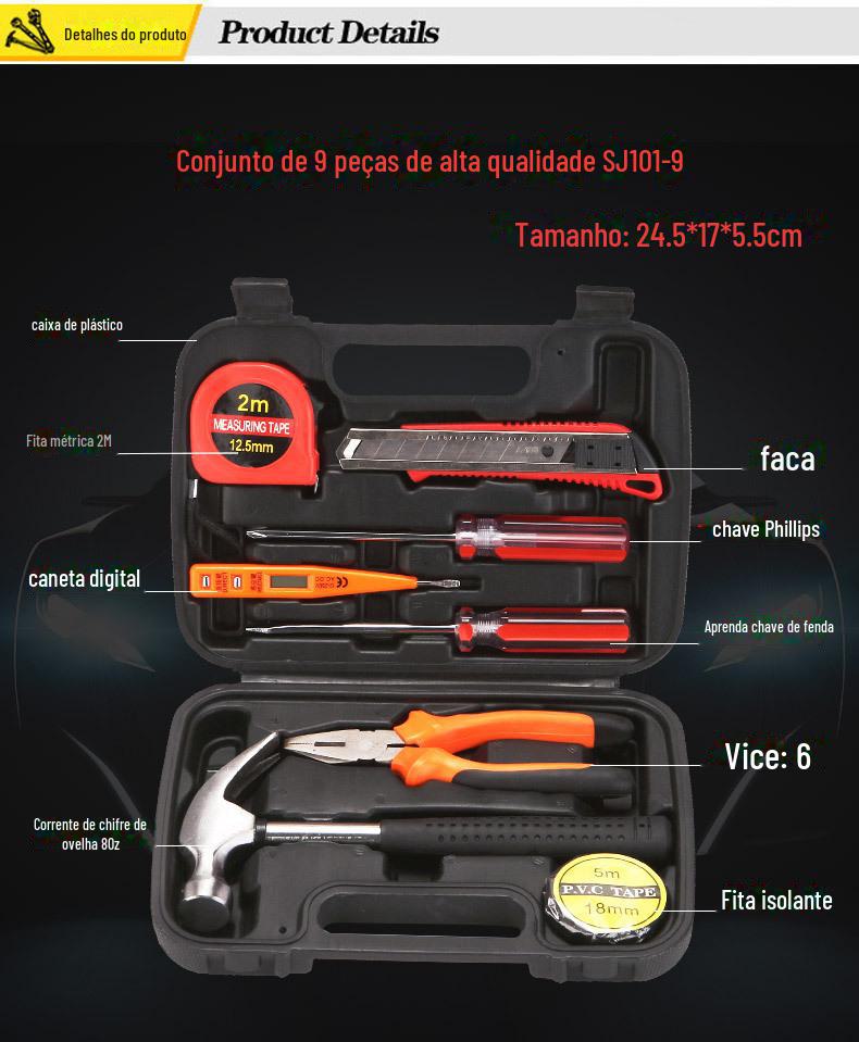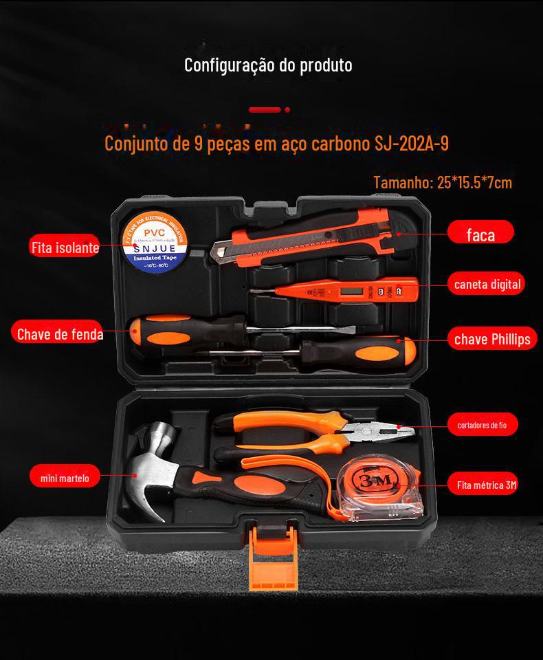 | SNJUE 9 peças caixa de ferramentas de hardware doméstico martelo prático conjunto de ferramentas de presente ferramenta de combinação 8009B-2 |