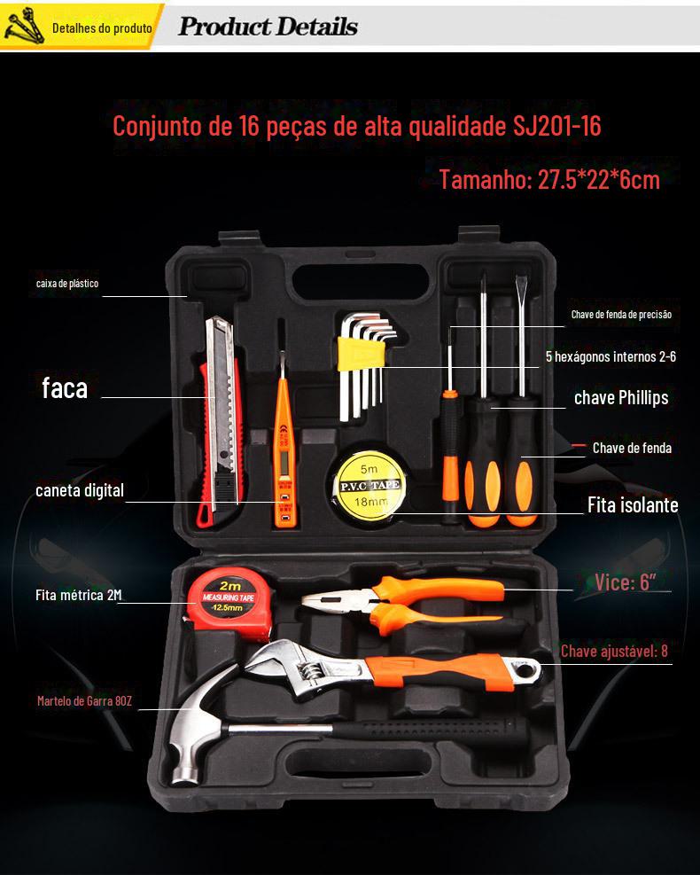| Ferramentas de hardware, 16 peças, caixa de ferramentas de combinação de presente, ferramentas de reparo de carro, chave de martelo tipo b 8016g |