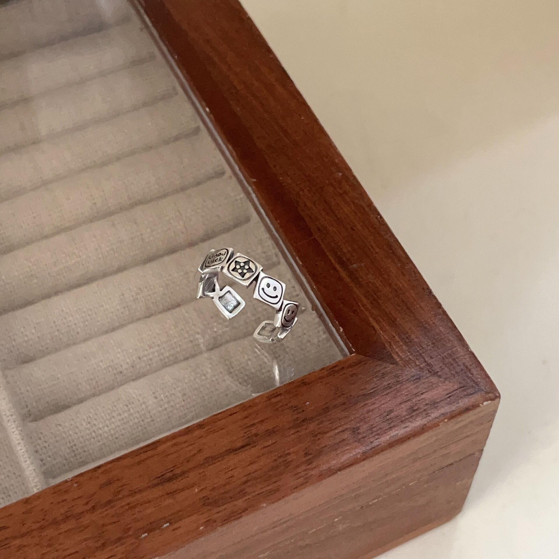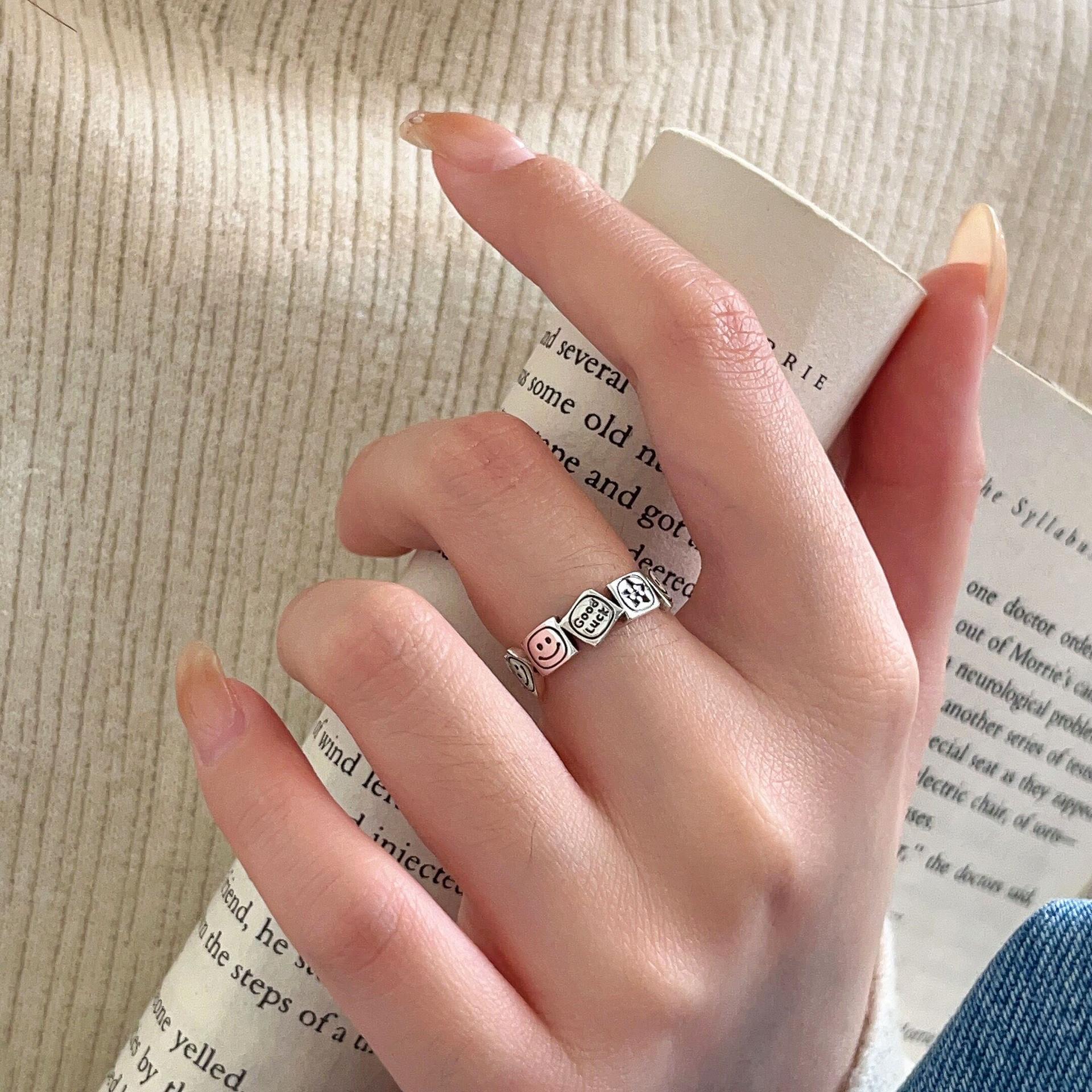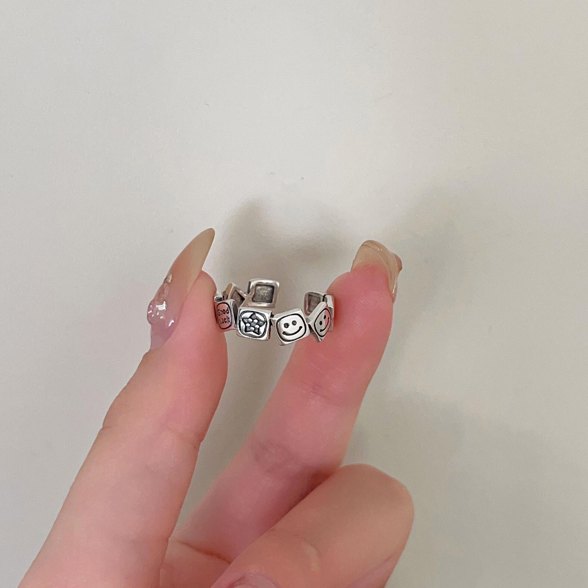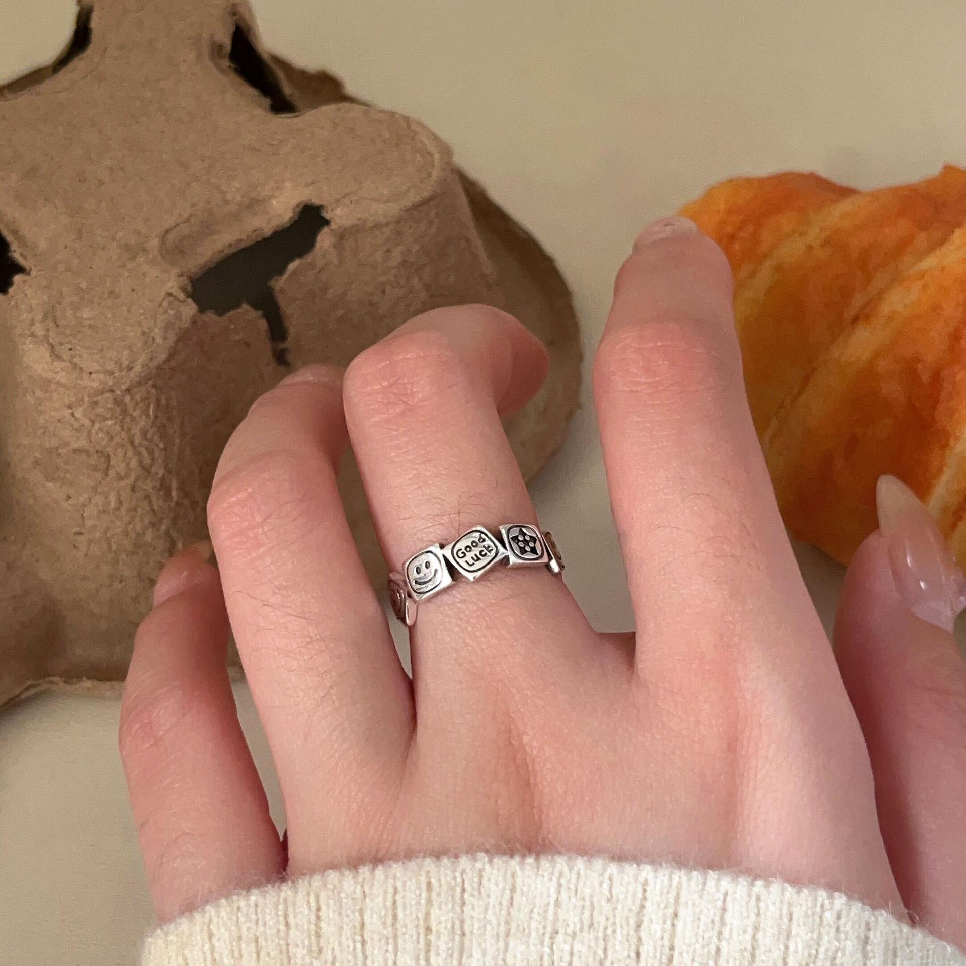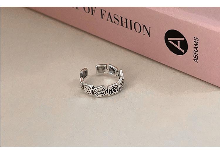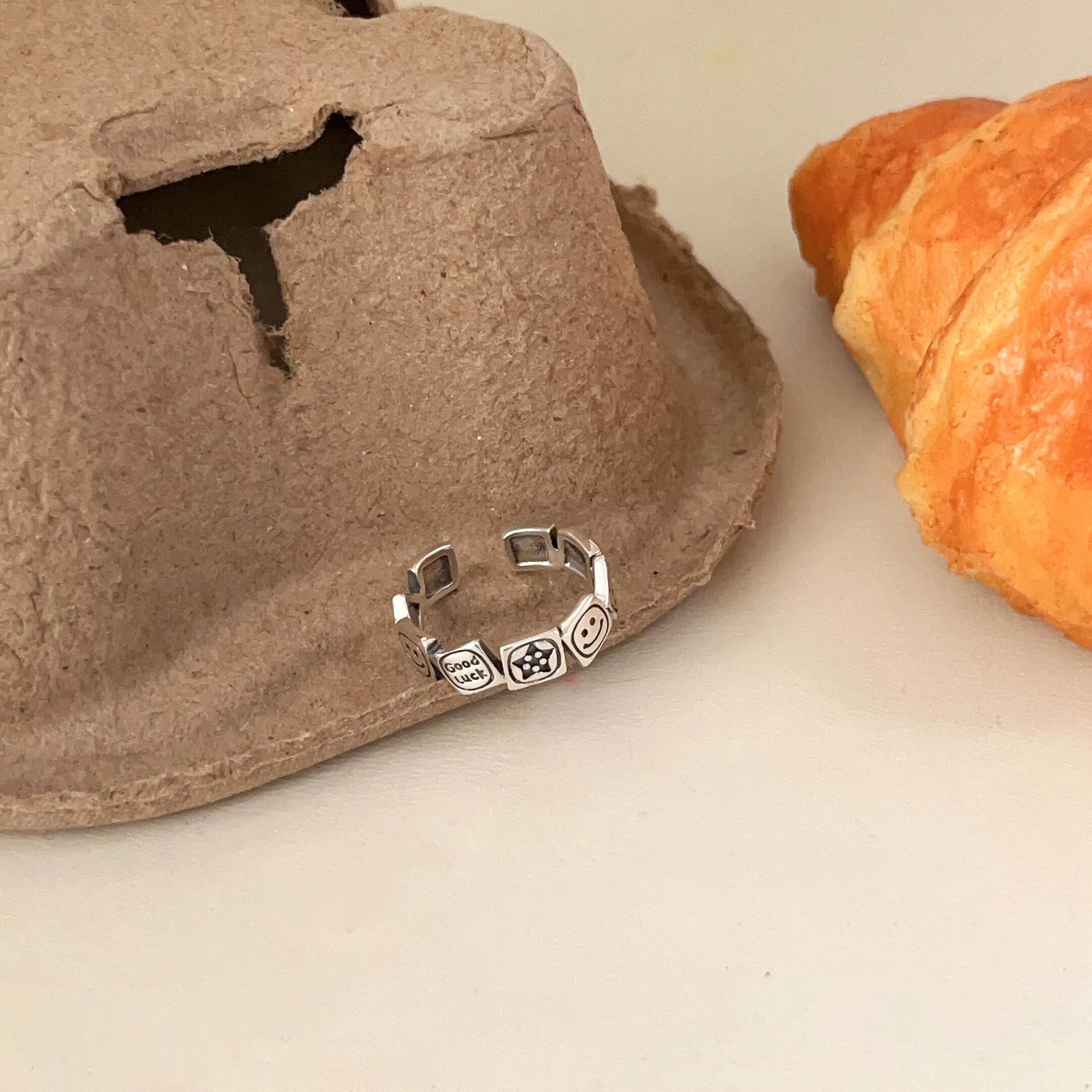 Compre Prata Ruitai s925 prata esterlina Coreia do Sul nicho design retro angustiado quadrado Smiley anel feminino moda anel aberto no atacado no Joom.pro
