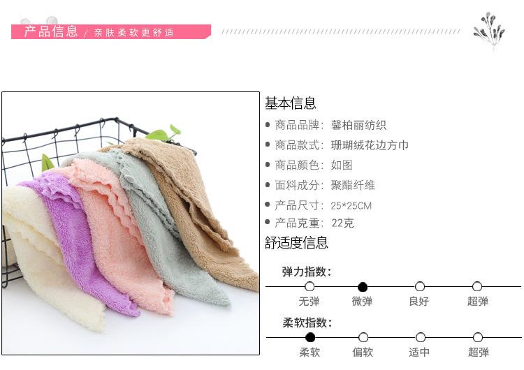 Toalha quadrada de alta densidade lã de coral pequena toalha quadrada de cor sólida toalha de rosto infantil pequena fábrica de toalhas atacado