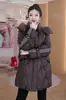 Jaqueta de comprimento médio ao ar livre feminina três em um destacável 2023 novo casaco de inverno engrossado forrado de lã na moda