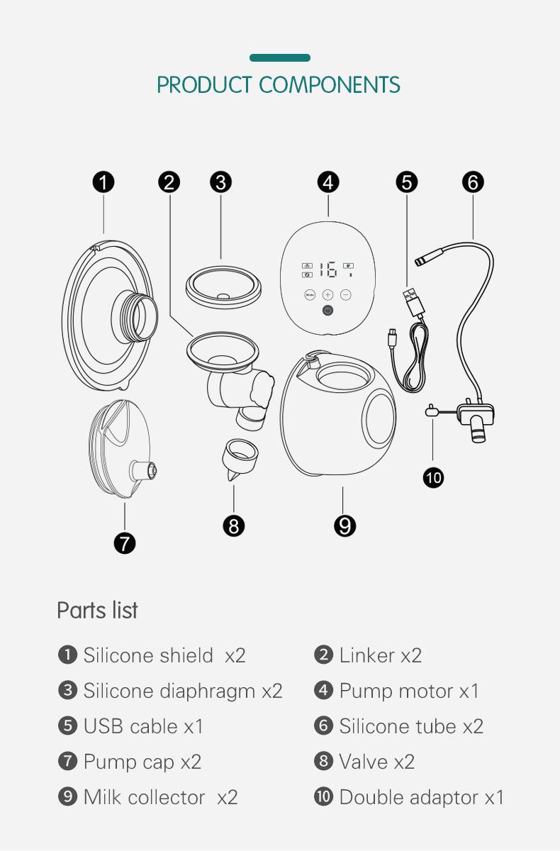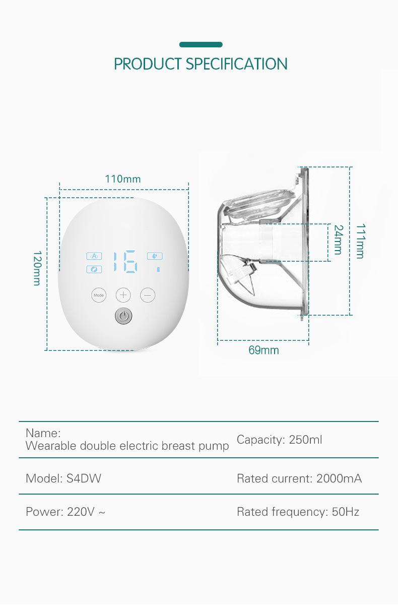 Bomba Tira-Leite Vestível S4DW: Capacidade da Bateria: 1200mAh, Tamanho do Protetor de Seio: 27mm/24mm Opcional,