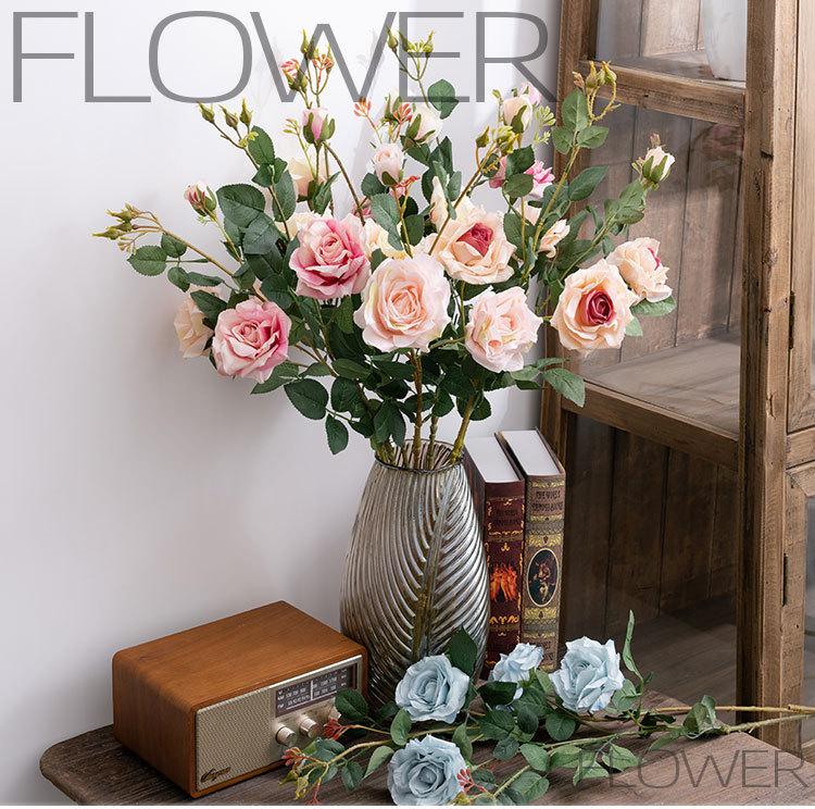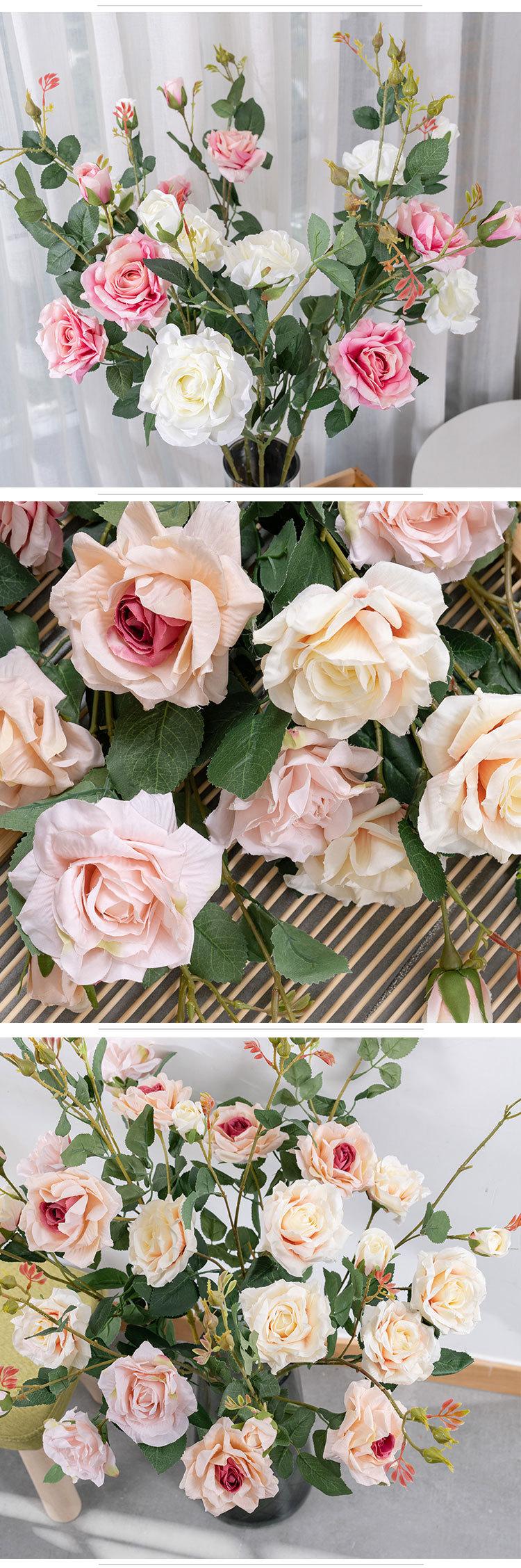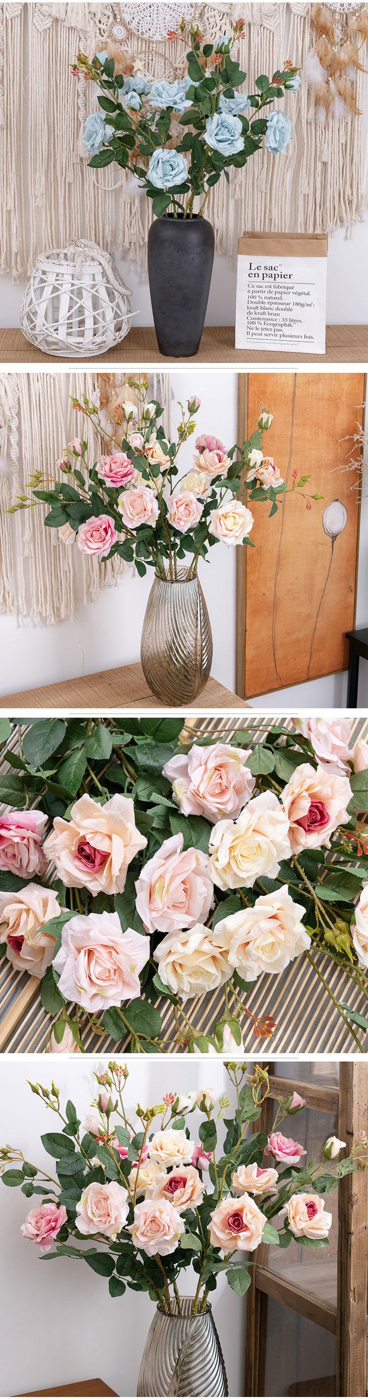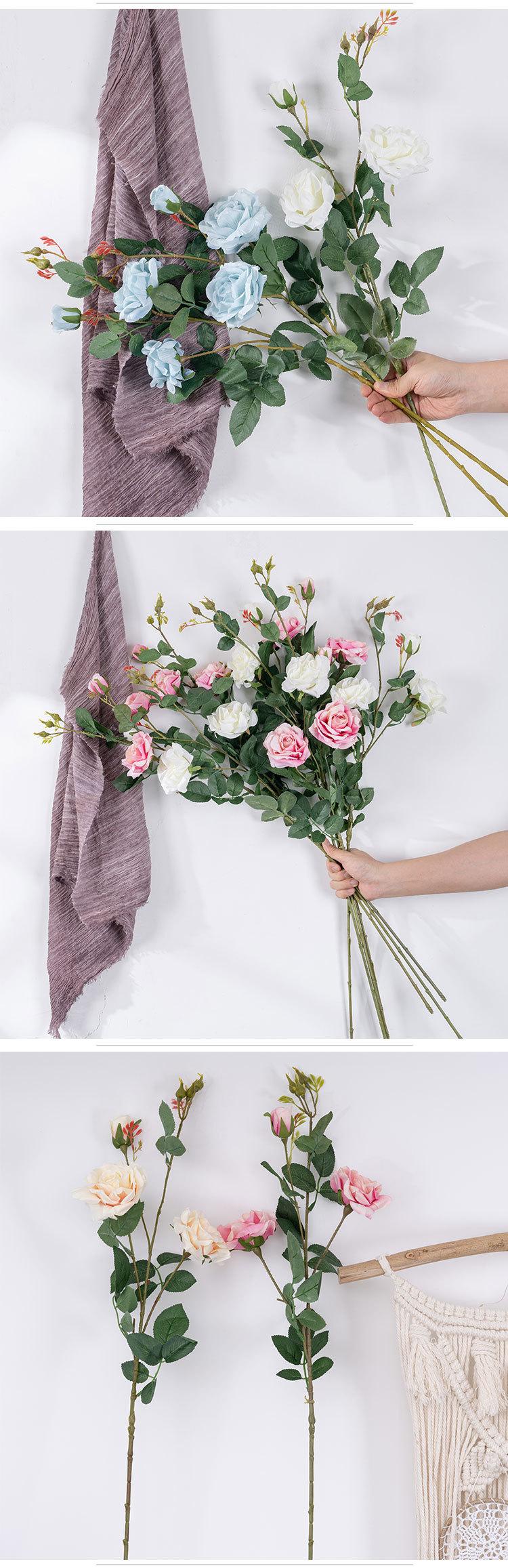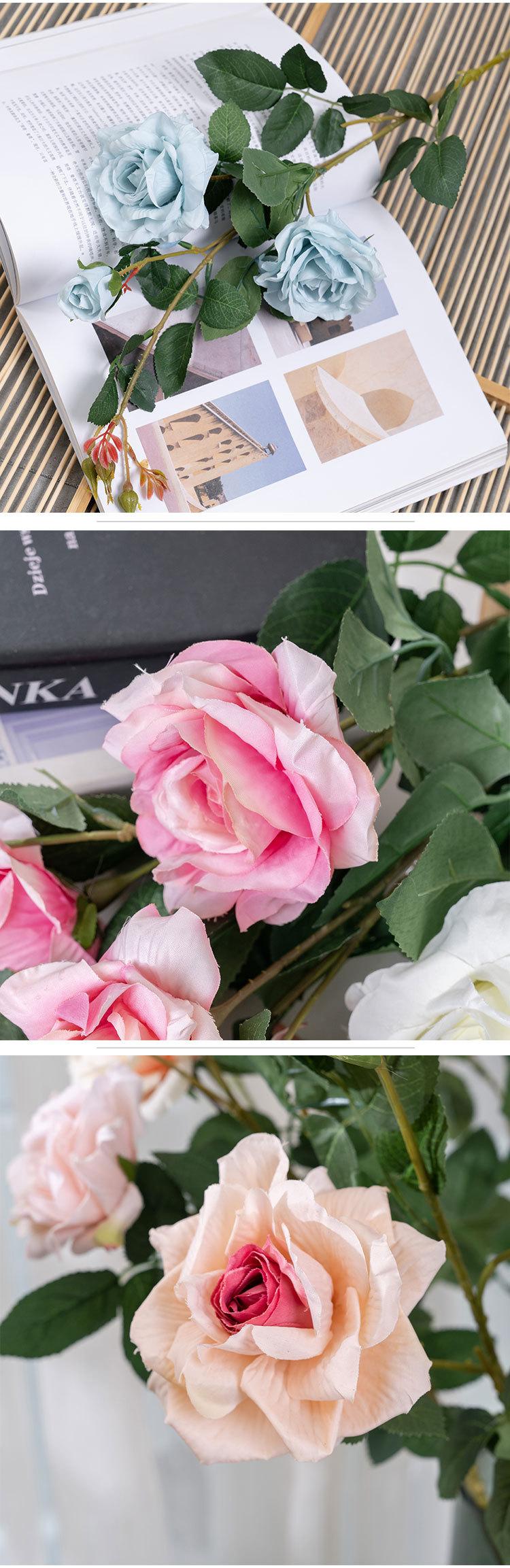 Atacado do Fabricante Flor Artificial Rosa de Canto 3 Cabeças Atacado Decoração de Casamento Casa Flor Artificial Transfronteiriça Mw19950